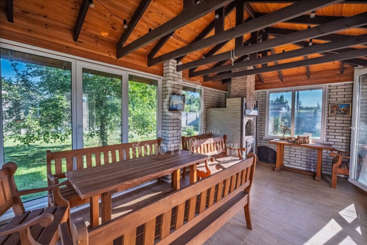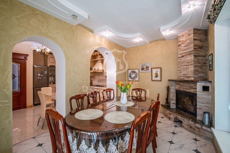 Будинок повністю готовий до проживання, з якісним ремонтом, натуральними матеріалами в оздобленні та продуманим плануванням. Житлова площа — 108 м2, є двосторонній вхід, дубові сходи, мармуровий камін, кухня з натурального дерева та мармуровою стільницею.