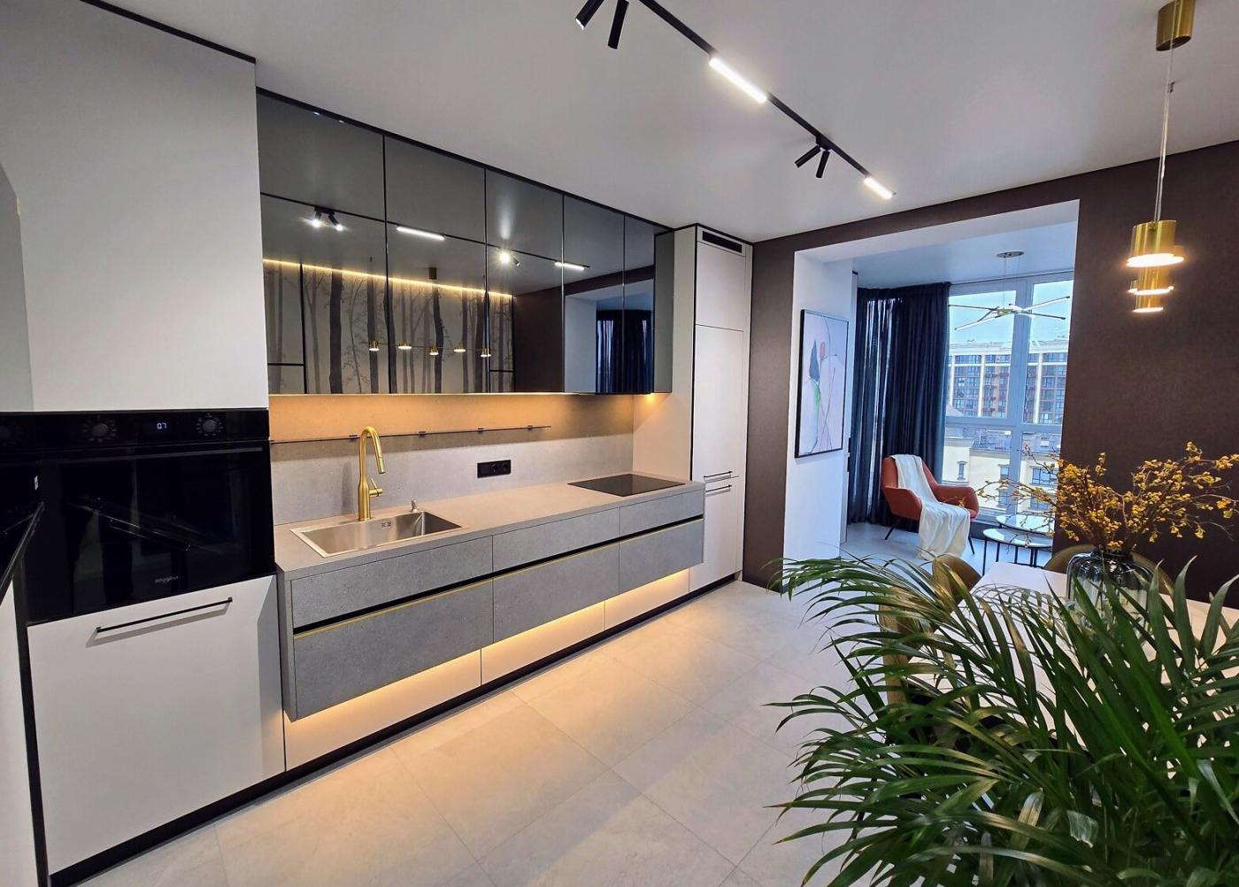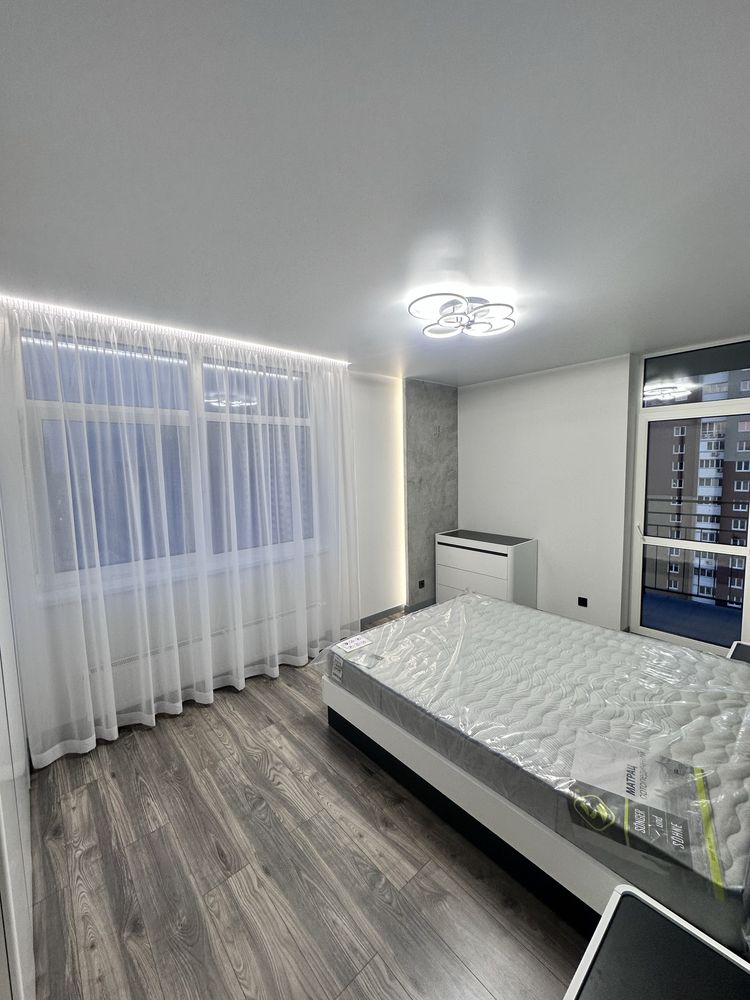 У квартирі тільки закінчений сучасний ремонт. Планування включає затишну спальню, дитячу кімнату/кабінет та гардеробну. Житло повністю укомплектоване якісними меблями та усією побутовою технікою бренду «Gorenje».