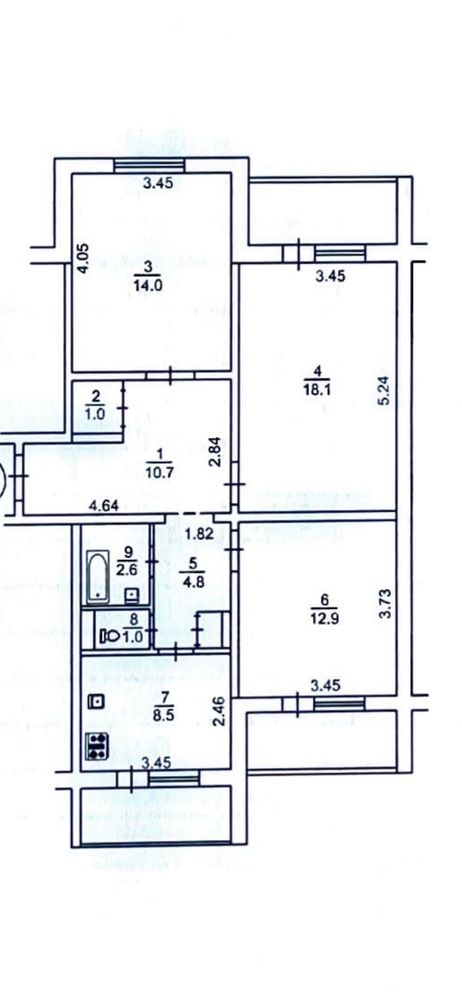 3-кімнатна двостороння оселя 84,4 м2 з трьома лоджіями!