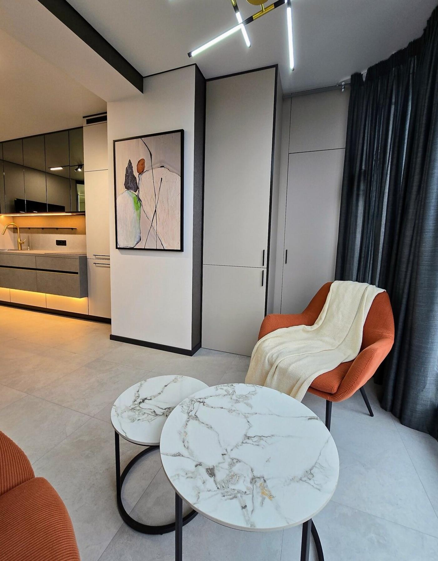 Загальна площа помешкання складає 65 м2, квартира знаходиться на 7 поверсі 10-поверхового будинку. У квартирі виконано дуже класний дизайнерський ремонт — це рішення, в якому кожен сантиметр простору має сенс і комфорт.