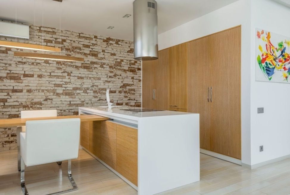 Простора кухня-вітальня обладнана вбудованими меблями під замовлення та якісною побутовою технікою. Дві окремі спальні, гардеробна кімната, ванна та душ — усе продумано до дрібниць.