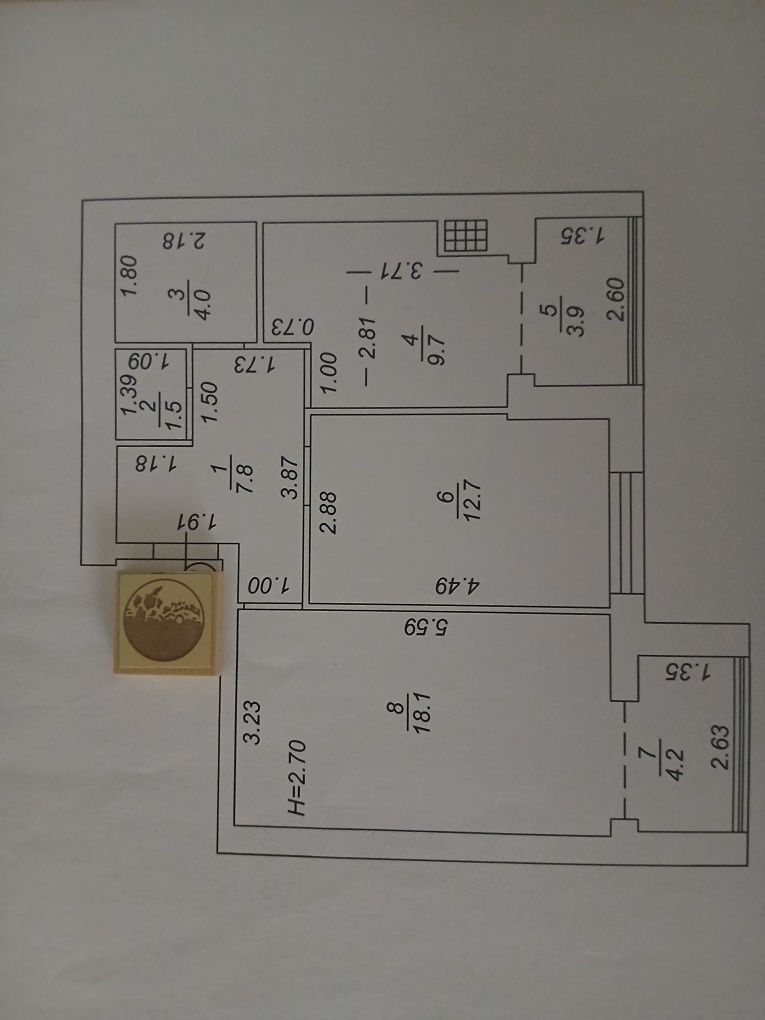 Загальна площа становить 61,9 м², житлова — 30,8 м² (кімнати 12,7 м² та 18,1 м²). Кухня — 9,7 м², ванна кімната — 4 м², коридор — 7,8 м², є окрема вбиральня 1,5 м².