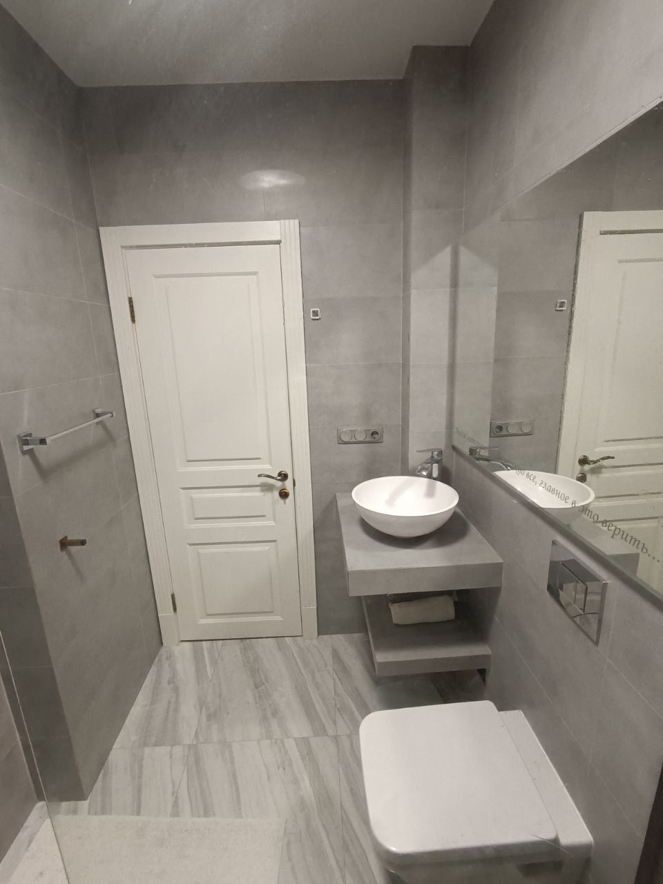 У квартирі два санвузли по 4 м²: душова з тропічним душем та теплими підлогами, а також ванна кімната з великою ванною, гігієнічним душем і вбудованим пеналом.
