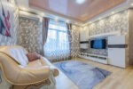 Квартира дуже тепла й світла, з роздільним плануванням і продуманим зонуванням вітальні та спальної частини. Ремонт виконано у світлих тонах із сучасними акцентами — інтер’єр виглядає актуально й гармонійно.