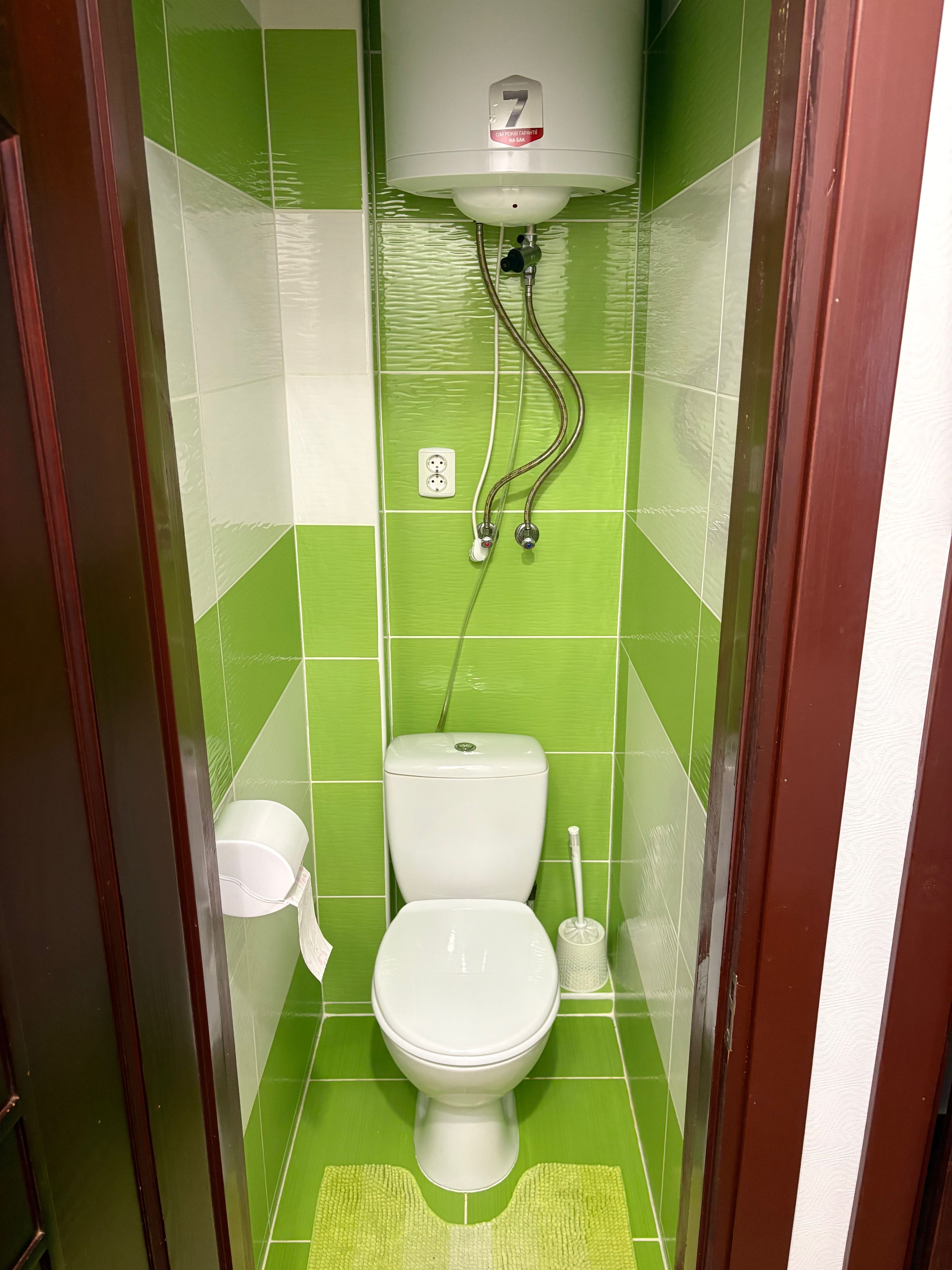 У квартирі залишається вся необхідна техніка та меблі: холодильник і пральна машина Indesit, бойлер Gorenje, газова плита з витяжкою, кухонний стіл зі стільцями, розкладний диван, телевізійна тумба, комфортне ліжко з новим матрацом, шафа-купе, туалетний столик із дзеркалом. На балконі та в прихожій облаштовані полиці для зберігання й антресоль.