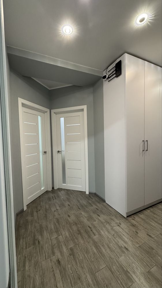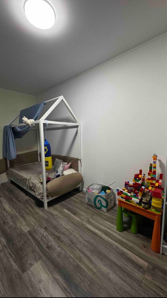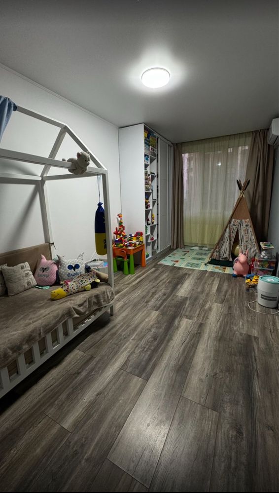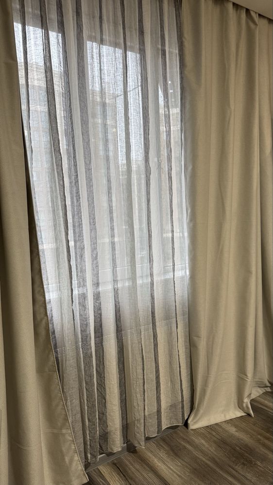 Тюлі у спальні та дитячій кімнаті виконані з якісної напівнатуральної тканини, а щільні штори забезпечують здоровий сон, захищаючи від сонячних променів. У прихожій облаштована велика шафа та дзеркало.