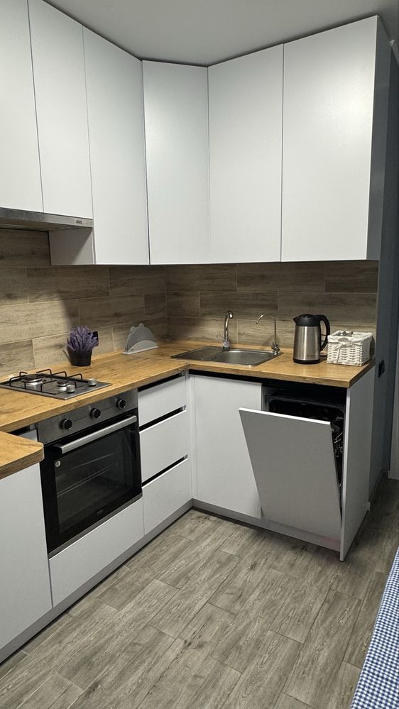 Оселя повністю укомплектована технікою: вбудована посудомийна машина, духова шафа, варильна поверхня, пральна та сушильна машини, холодильник, кондиціонер, телевізор і потужний Wi-Fi роутер. У спальні — велике ліжко 180×200 з якісним матрацом Trends від Matro Lux.