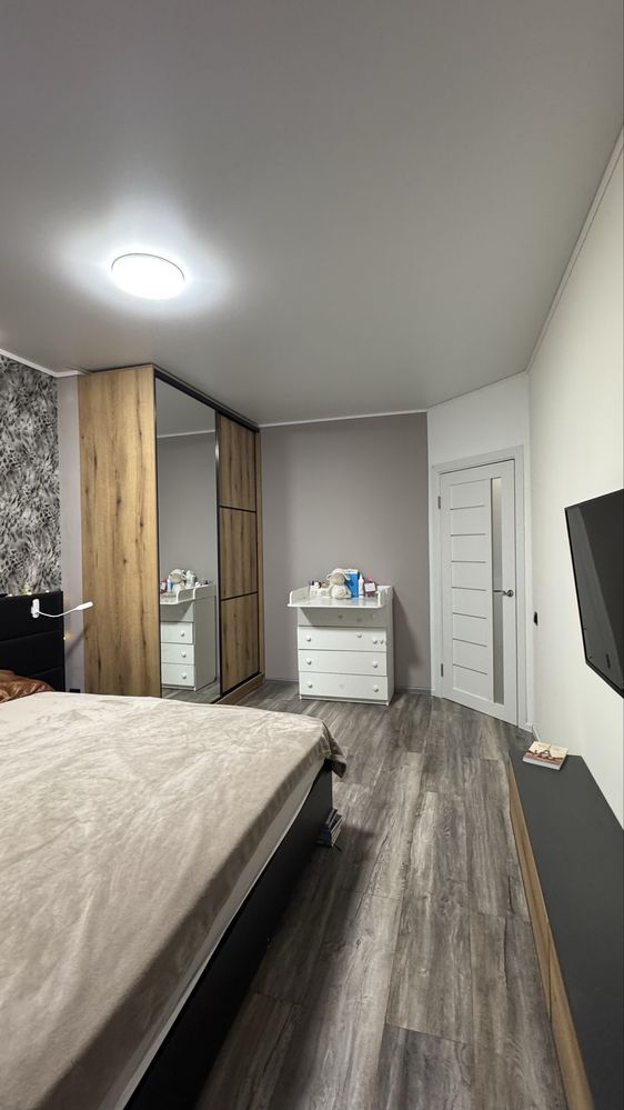 Квартира має сучасне планування «євро трійка»: дві кімнати та додаткове спальне місце на лоджії. У кухні встановлена тепла підлога, меблі виготовлені за індивідуальним замовленням.
