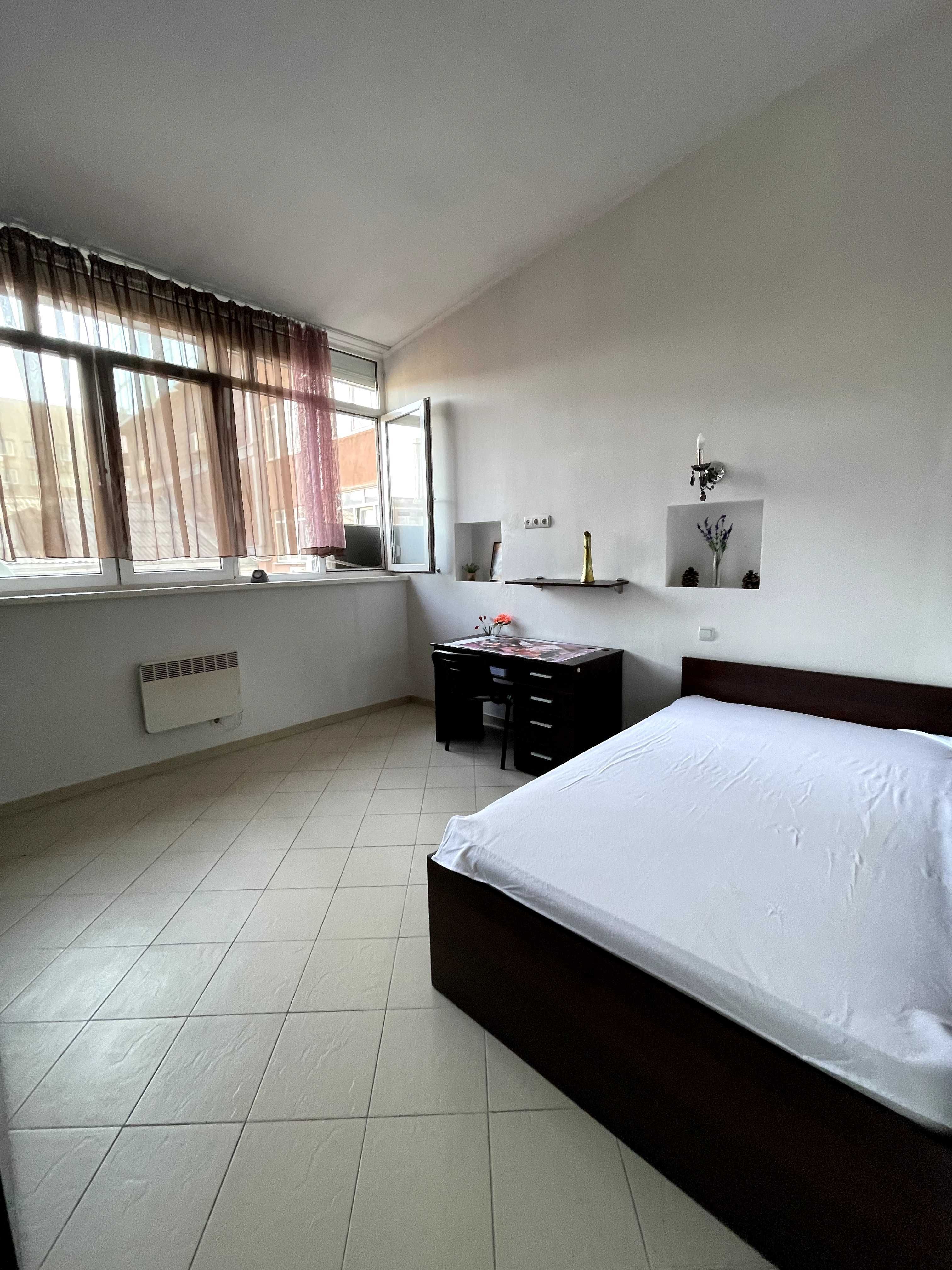 Квартира повністю мебльована та оснащена всім необхідним для життя. Є двоспальне та півтораспальне ліжка з ортопедичними матрацами, два письмових столи, багато місця для зберігання речей.