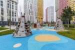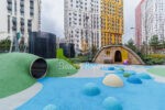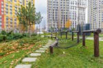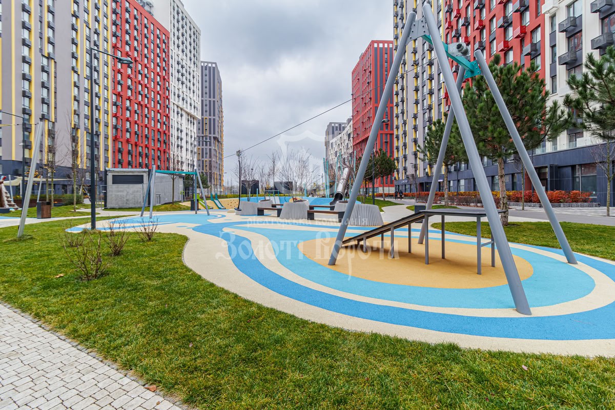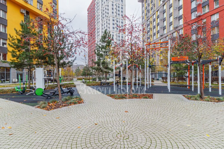Двір облаштований для мешканців: сучасні дитячі майданчики з безпечним покриттям, спортивний майданчик для дорослих, зелені зони з ландшафтним дизайном, лавки для відпочинку, гостьові паркомісця.