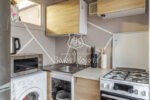У помешканні збереглися базові меблі: шафа, ліжко, холодильник, пральна машина та кухонний гарнітур. Наявність газу робить щоденне користування кухнею зручним та економічним.
