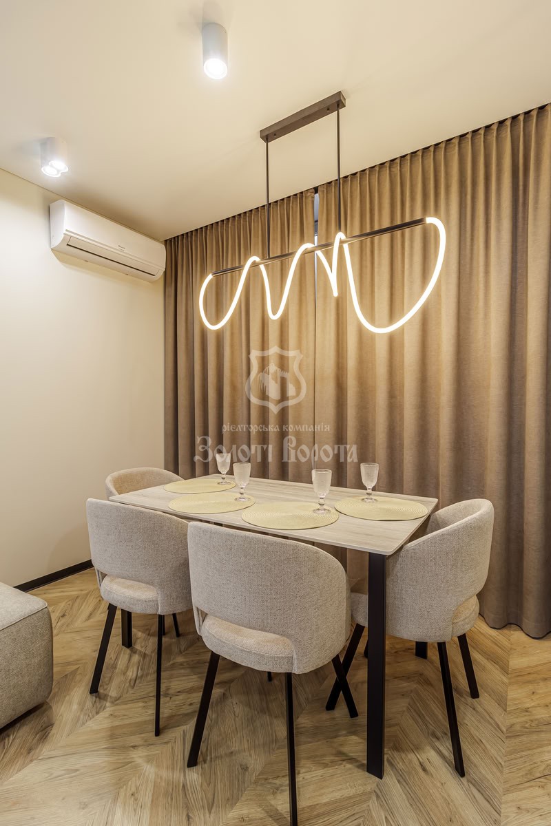 Житло створене для затишного щоденного життя: дві окремі кімнати та простора кухня-вітальня формують продумане планування, є окрема кімната під гардероб.