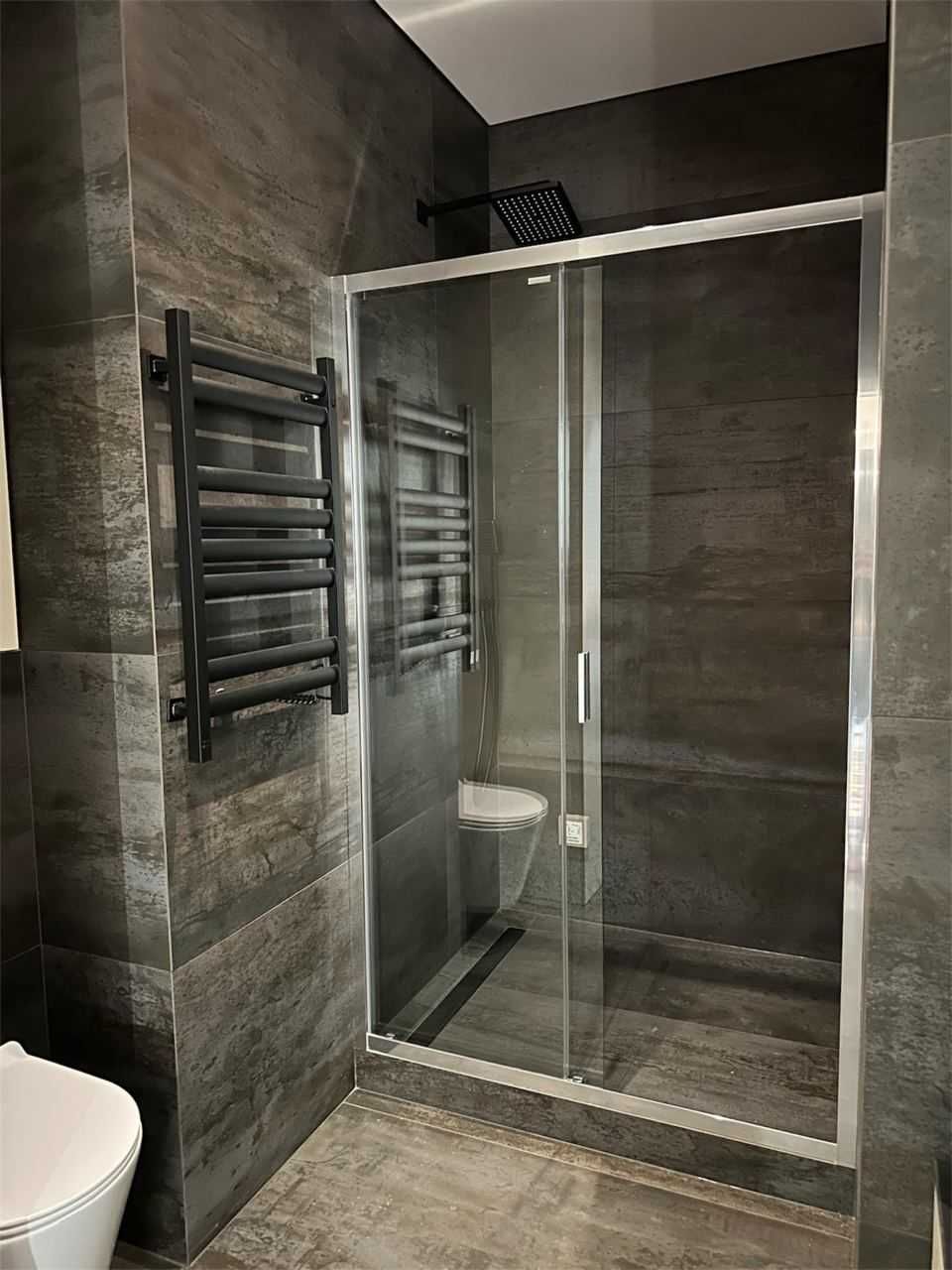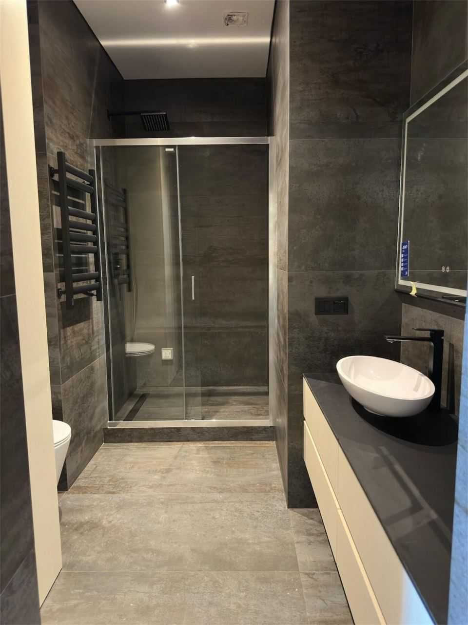Суміжний санвузол оснащений душем та якісною сантехнікою. Усе виконано в актуальному дизайнерському стилі: світлі тони, продумане освітлення, нові меблі й повний комплект техніки — посудомийна машина, пральна, вбудований холодильник, варильна поверхня з витяжкою, духова шафа, кондиціонер з функцією обігріву. Житло цегляне, тепле та тішить чудовою шумоізоляцією.
