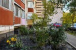 Двір є зеленим і охайним, облаштований дитячим майданчиком, лавочками, клумбами та деревами. Завжди є місце для паркування, а поруч розташована паркова зона для прогулянок.