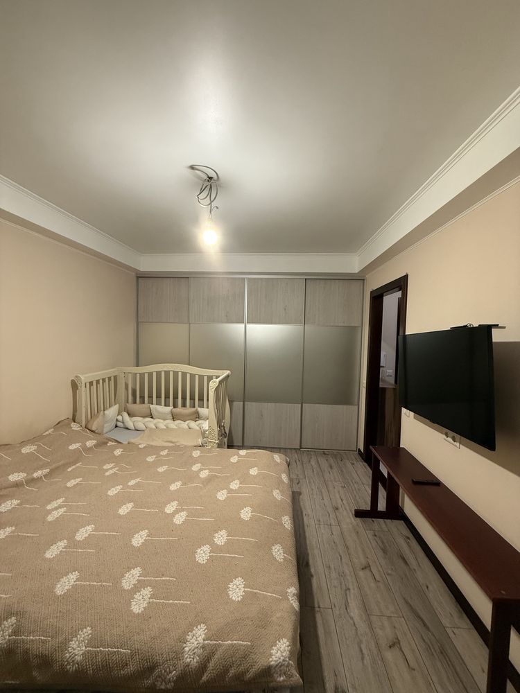 У квартирі зроблено капітальний ремонт у 2021 році: нова проводка, сантехніка, каналізація, стяжка підлоги, оновлені стіни та стеля. Є балкон. Оселя продається з технікою та меблями, окрім столу, ліжок і телевізора — як на фото.