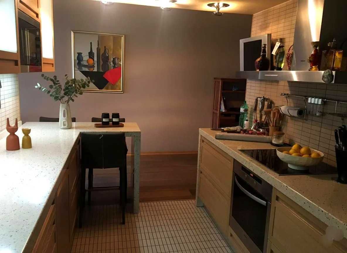 Помешкання вирізняється продуманим плануванням і якісним ремонтом. Інтер’єр виконаний у сучасному, вишуканому стилі: велика вітальня з панорамними вікнами, окрема їдальня, простора кухня та затишна приватна зона.