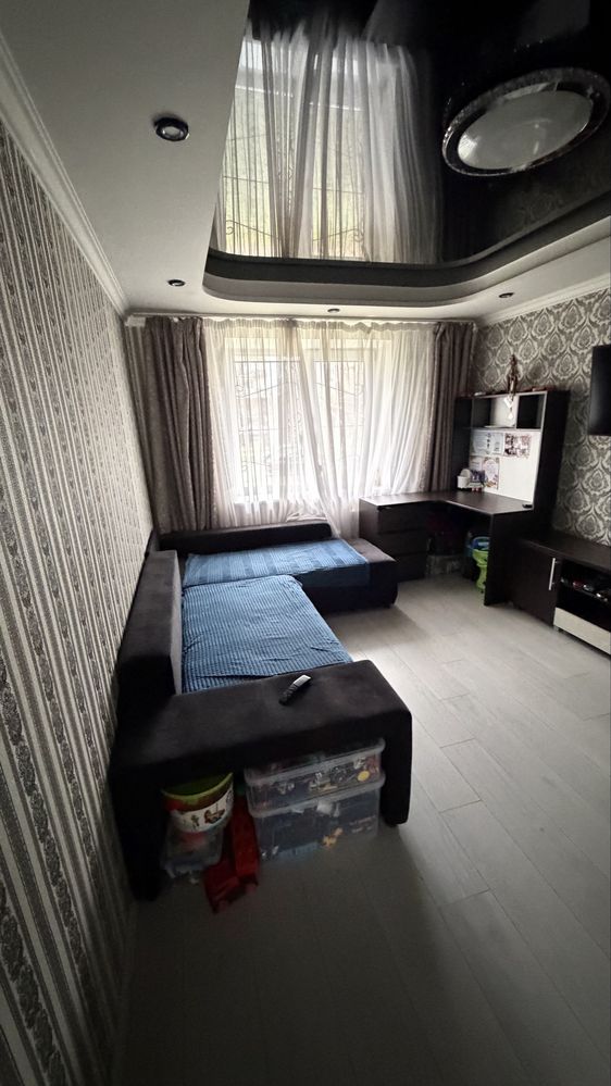 Кімнати в оселі окремі, що забезпечує зручність для всієї родини. Санвузол роздільний. Є простора лоджія, що об'єднує дві кімнати. Стан помешкання гарний: на підлозі укладено ламінат та плитку, на стінах — шпалери.