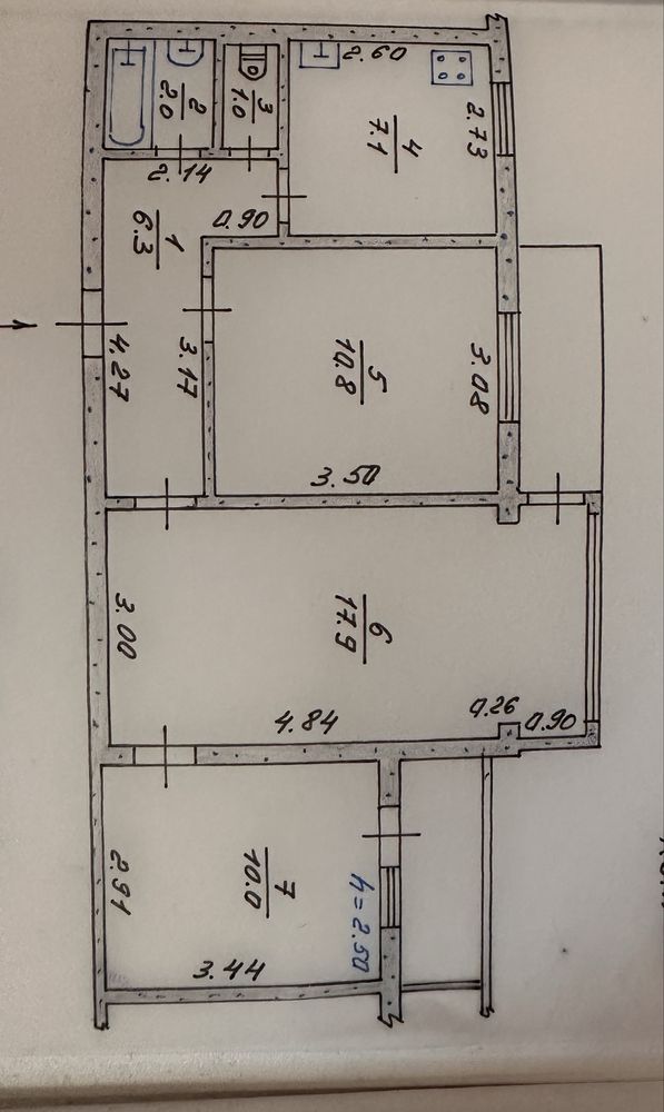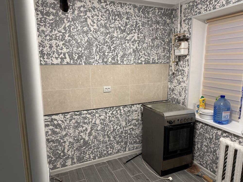 Загальна площа квартири складає 57,7 м2, з яких 7,1 м2 займає кухня, яка вже оснащена сучасною робочою поверхнею та плиткою, що додає стилю та функціональності.