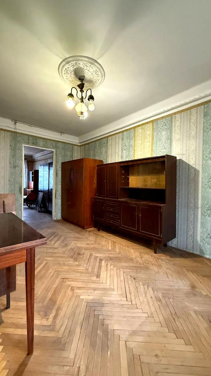 У помешканні на підлозі паркет, стіни оздоблені шпалерами. Оселя перебуває у задовільному стані, потребує лише косметичного ремонту, який можна виконати під власні вподобання.