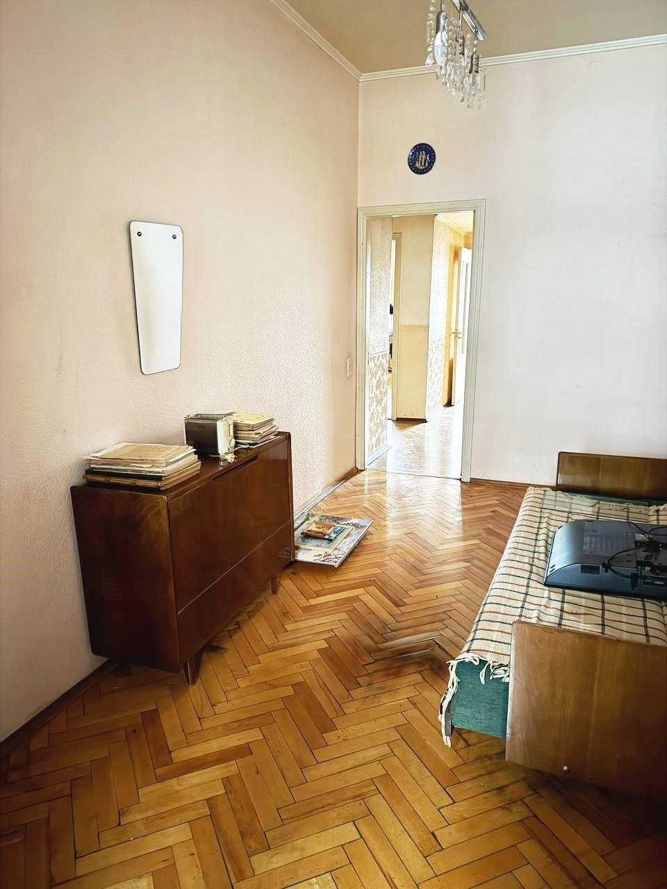 П’ятий поверх цегляного будинку «сталінської» забудови з ліфтом, загальна площа — 51 м2, окремі кімнати, продумане планування без несучих стін і висота стелі 3 метри, що додає простору та світла.