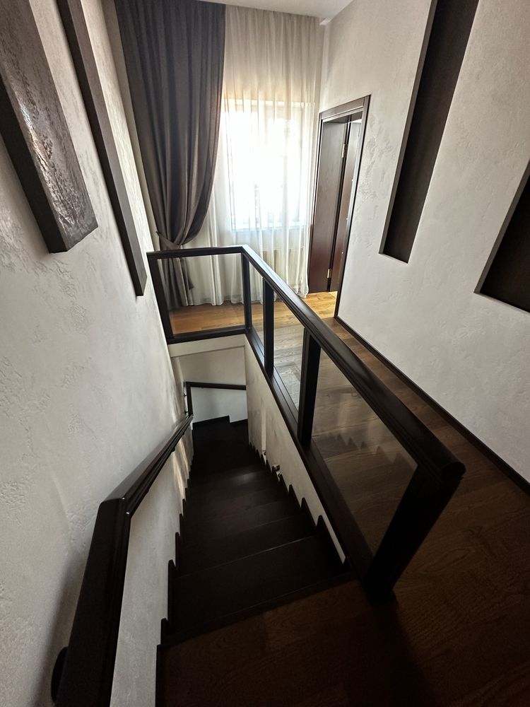 Другий рівень призначений для відпочинку: тут розміщені дві затишні спальні та основний санвузол, оснащений джакузі. Для ремонту використані виключно якісні матеріали, а підлога поєднує естетичний ламінат та міцну плитку. Додатковим комфортом є встановлена система очищення води.