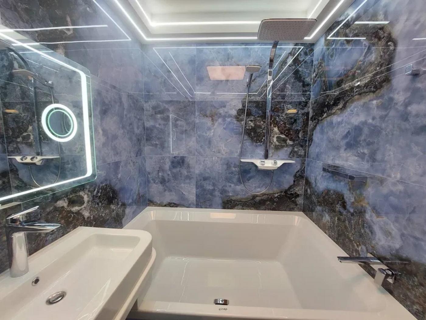 Ремонт виконаний із використанням високоякісних матеріалів. У квартирі встановлено вбудовані меблі, сучасну кухню з островом, містку гардеробну та укомплектовані санвузли (ванна та душова кабіна).