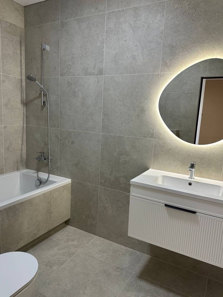 Ремонт виконаний з використанням якісних матеріалів: світлі стіни, ламінат і плитка преміум-класу, тепла підлога, натяжні тіньові стелі, сучасне магнітне освітлення. Проведено надійні електромонтажні й сантехнічні роботи.