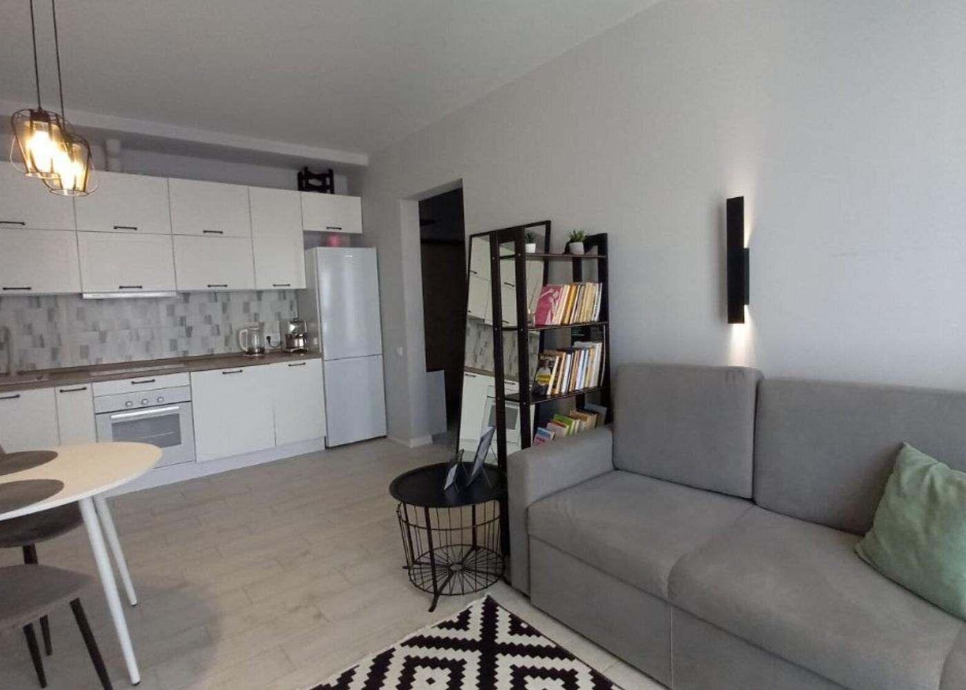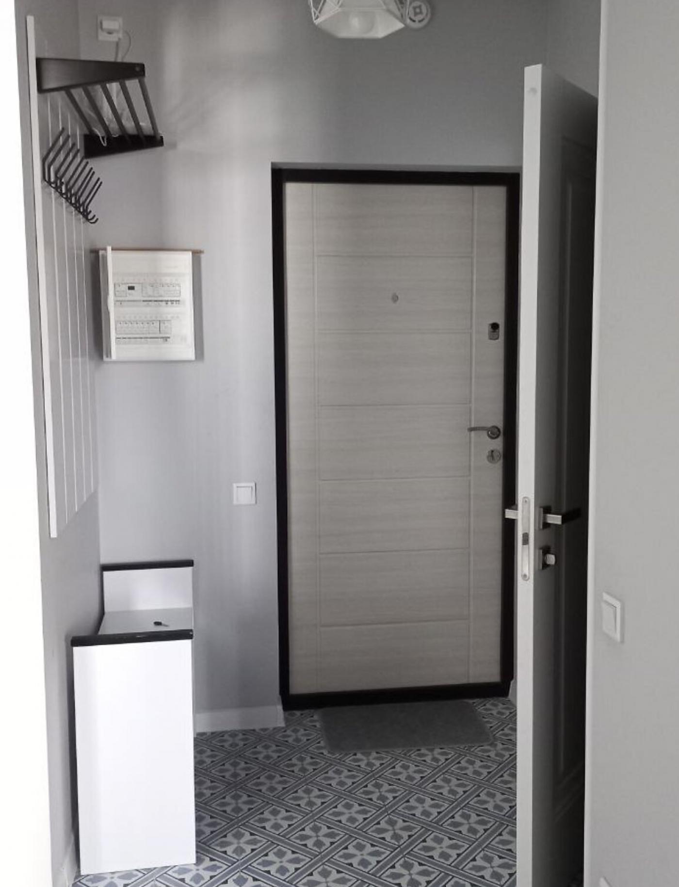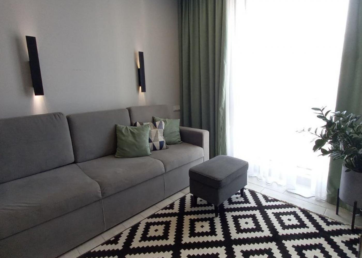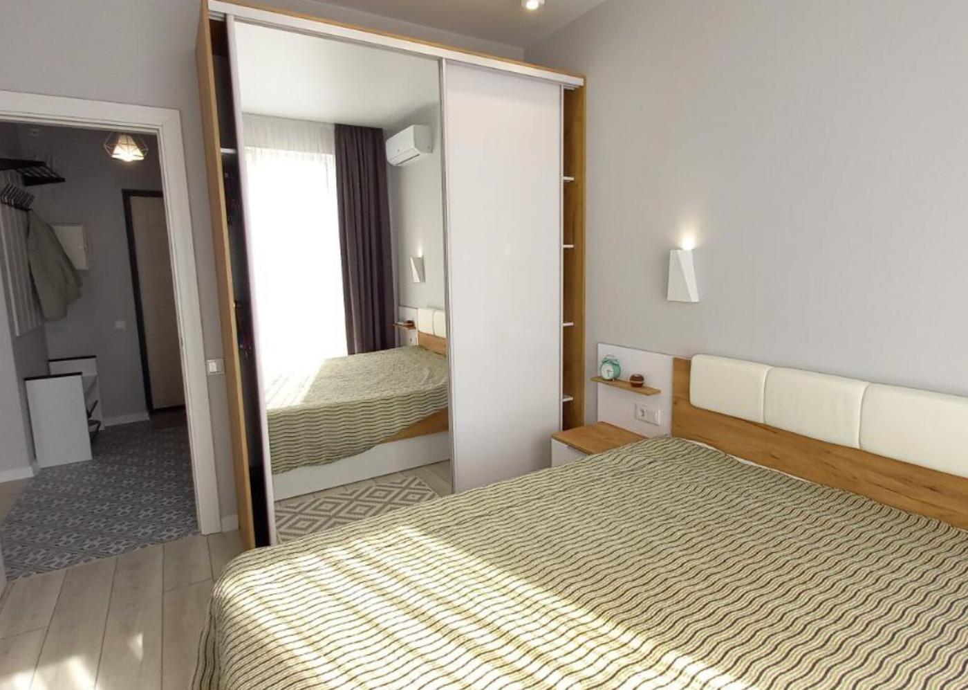 Житло повністю мебльоване: двоспальне ліжко з відмінним ортопедичним матрацом, шафа-купе, зручний гостьовий диван та інше. Санвузол спільний, обладнаний теплою підлогою та ванною.