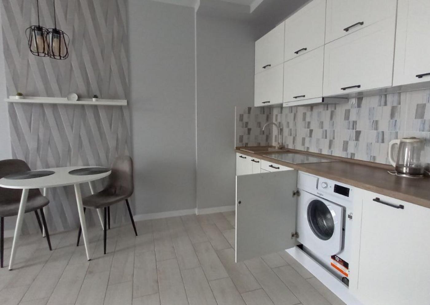 Квартира укомплектована всією необхідною технікою: бойлер, пральна машинка-автомат, кондиціонер, ТВ, мікрохвильова піч, електрочайник, духова шафа та холодильник.