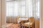 Завдяки великим вікнам приміщення наповнені природним світлом і мають приємну атмосферу.