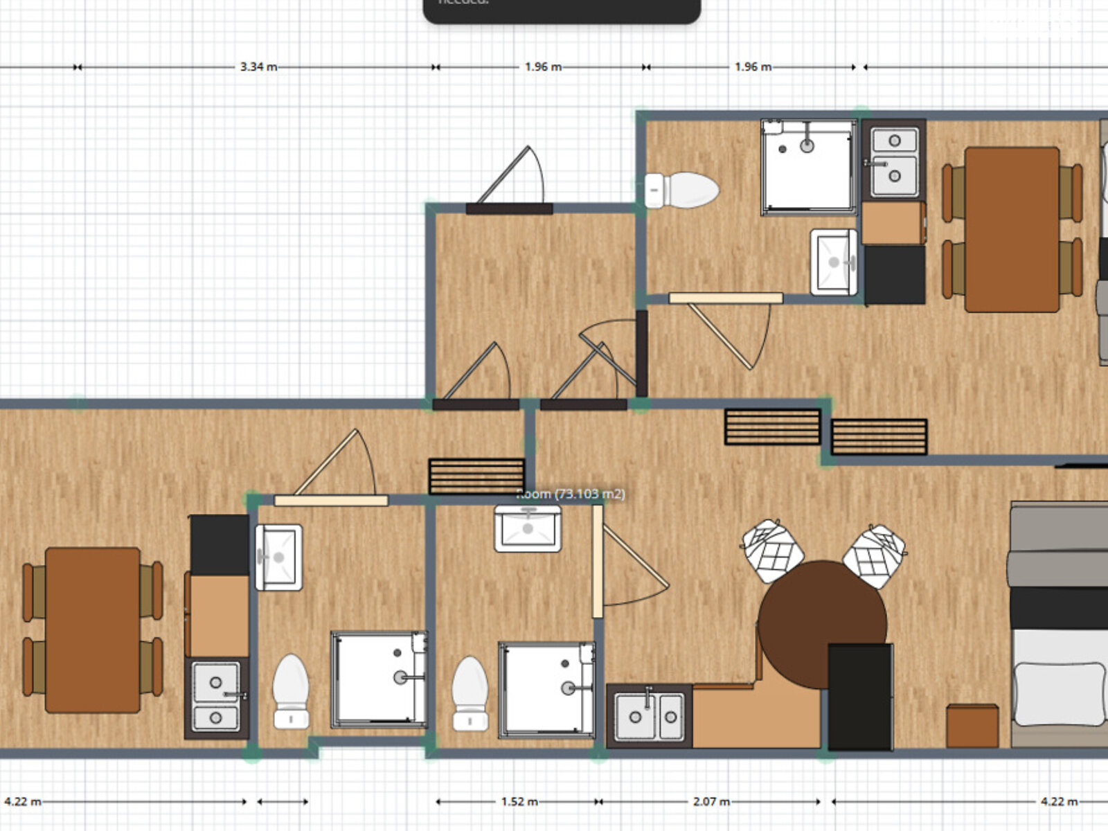 Кожна з трьох квартир має сучасний ремонт, виконаний у єдиному лаконічному стилі з використанням зносостійких матеріалів. Об’єкт повністю укомплектований усім необхідним для комфортного проживання: від кухонних гарнітурів із технікою та мікрохвильовими пічками до кондиціонерів, телевізорів, бойлерів та пральних машин. Особливу увагу приділено деталям, критично важливим для оренди: встановлено посилену звукоізоляцію між студіями, надійні броньовані двері та якісні склопакети. Формат студій є універсальним — вони ідеально підходять як для подобової оренди, так і для довгострокового проживання одного-двох мешканців.