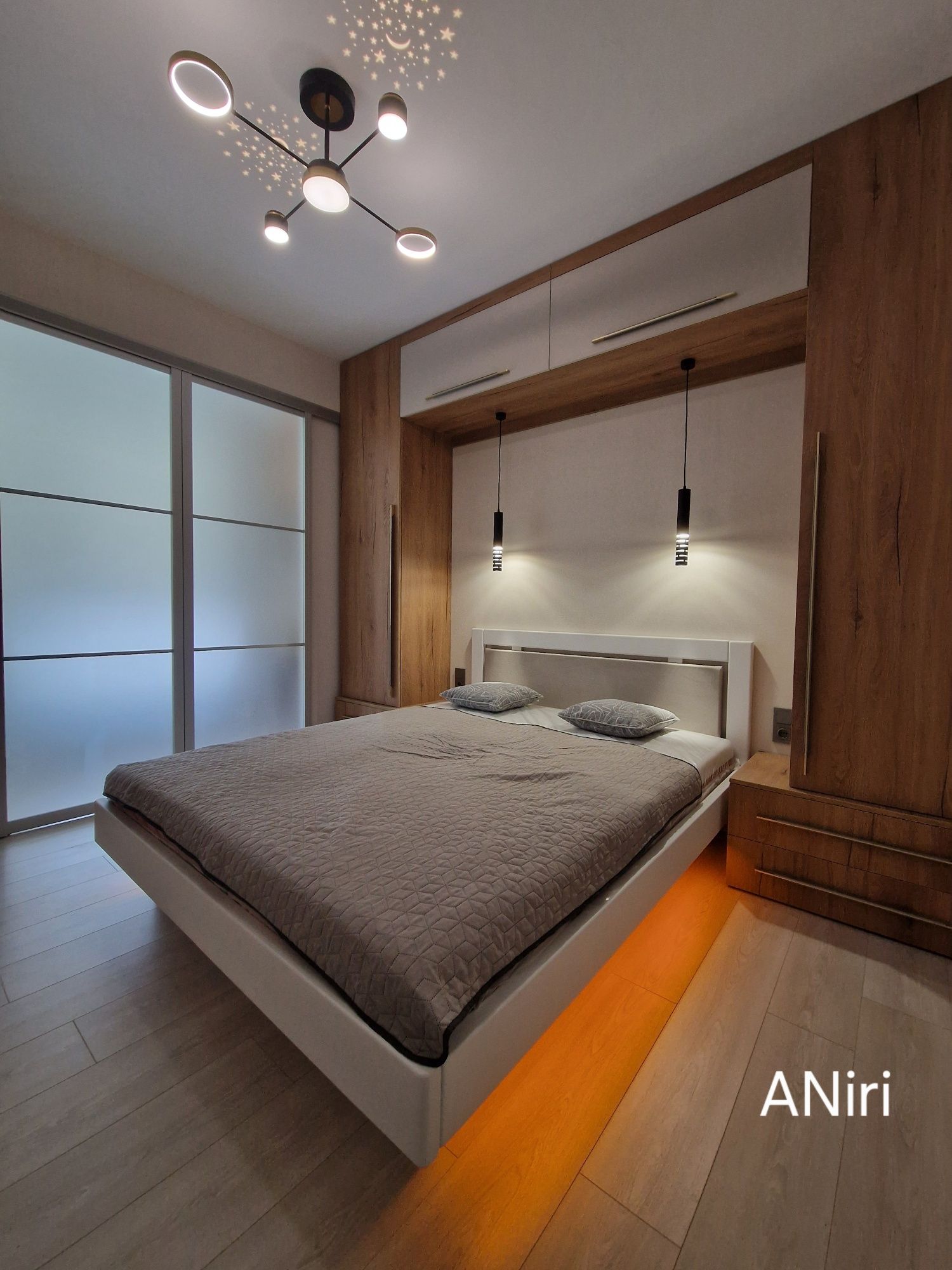 В оселі виконано новий сучасний ремонт із використанням преміальних матеріалів: міжкімнатні двері «Папа Карло», комбіновані стелі (малярка та гіпсокартон) висотою 2.7 м. у будинку встановлено генератор та інвертор — ліфти, вода та опалення є завжди. Тепла підлога (2 зони), кондиціонер, додаткове утеплення відкосів та сонцезахисні жалюзі закритого типу. Встановлено редуктори та фільтри для води, лічильники (електроенергія — двозонний, вода, тепло). Ліжко з натурального ясеня з ефектом «паріння» та підсвіткою. Квартира повністю укомплектована надійною технікою провідних брендів (Cooper&Hunter, LG, Whirlpool): інверторна пральна машина, індукційна плита, холодильник. Для зберігання речей передбачено три місткі вбудовані шафи. Санвузол облаштований сучасною душовою кабіною з трапом.