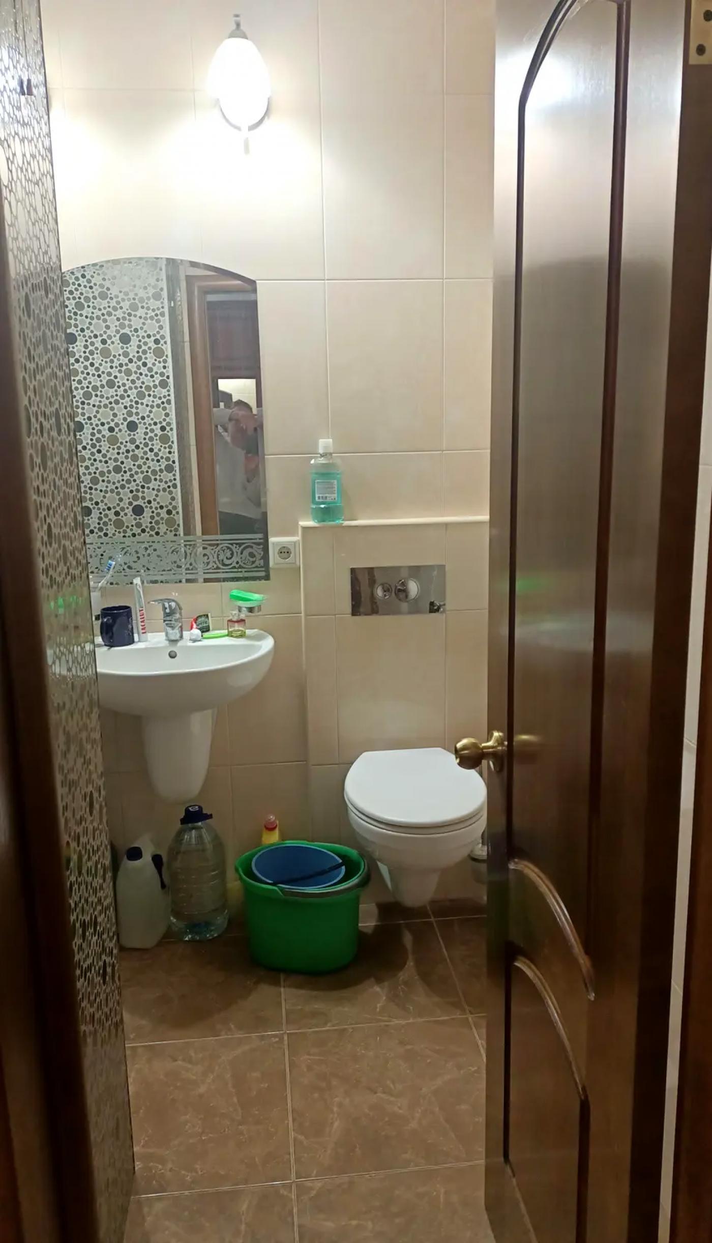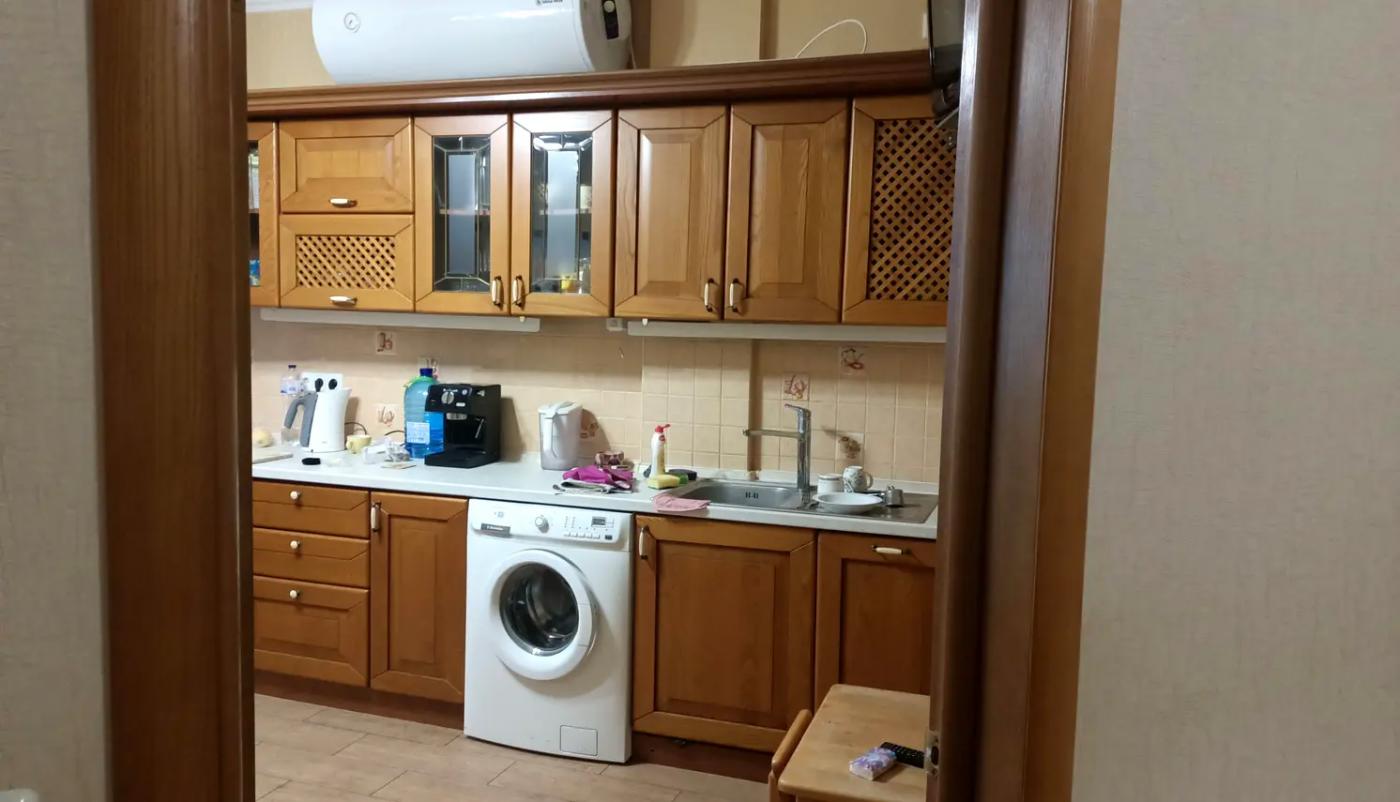 Кухня: встановлено вбудовану кухню з фасадом із натурального дуба. Техніка включає майже нову посудомийну машину, електроплиту, холодильник та окремий телевізор. При продажу залишаються всі меблі (окрім дитячої кімнати), що дозволяє мінімізувати витрати на облаштування.