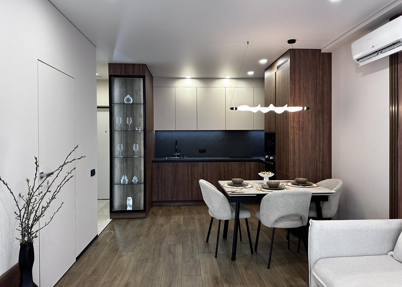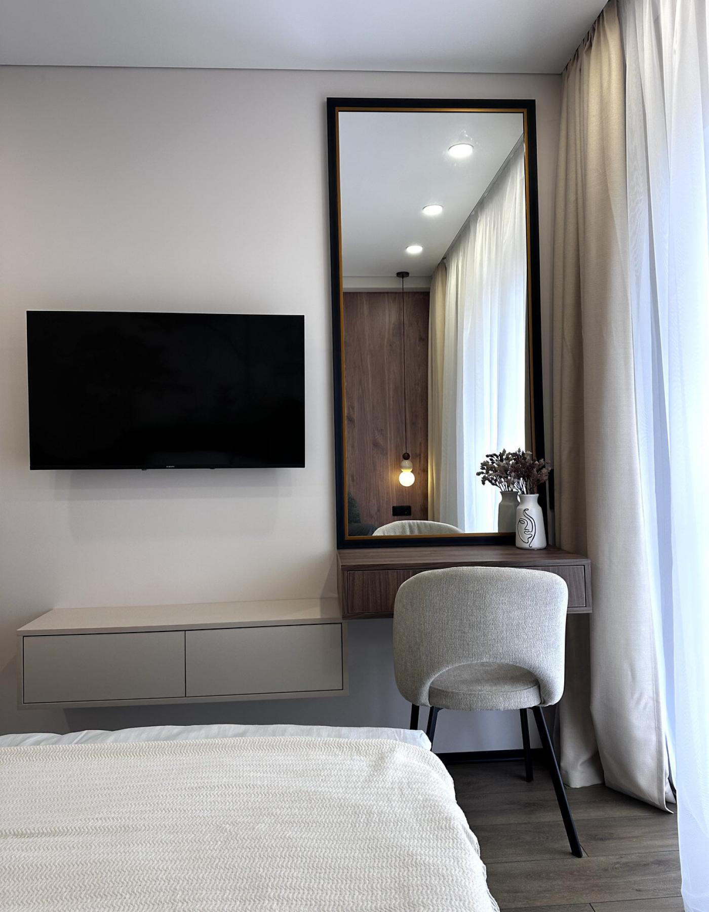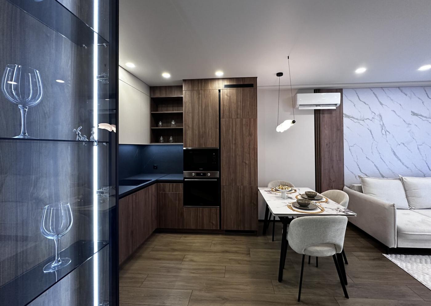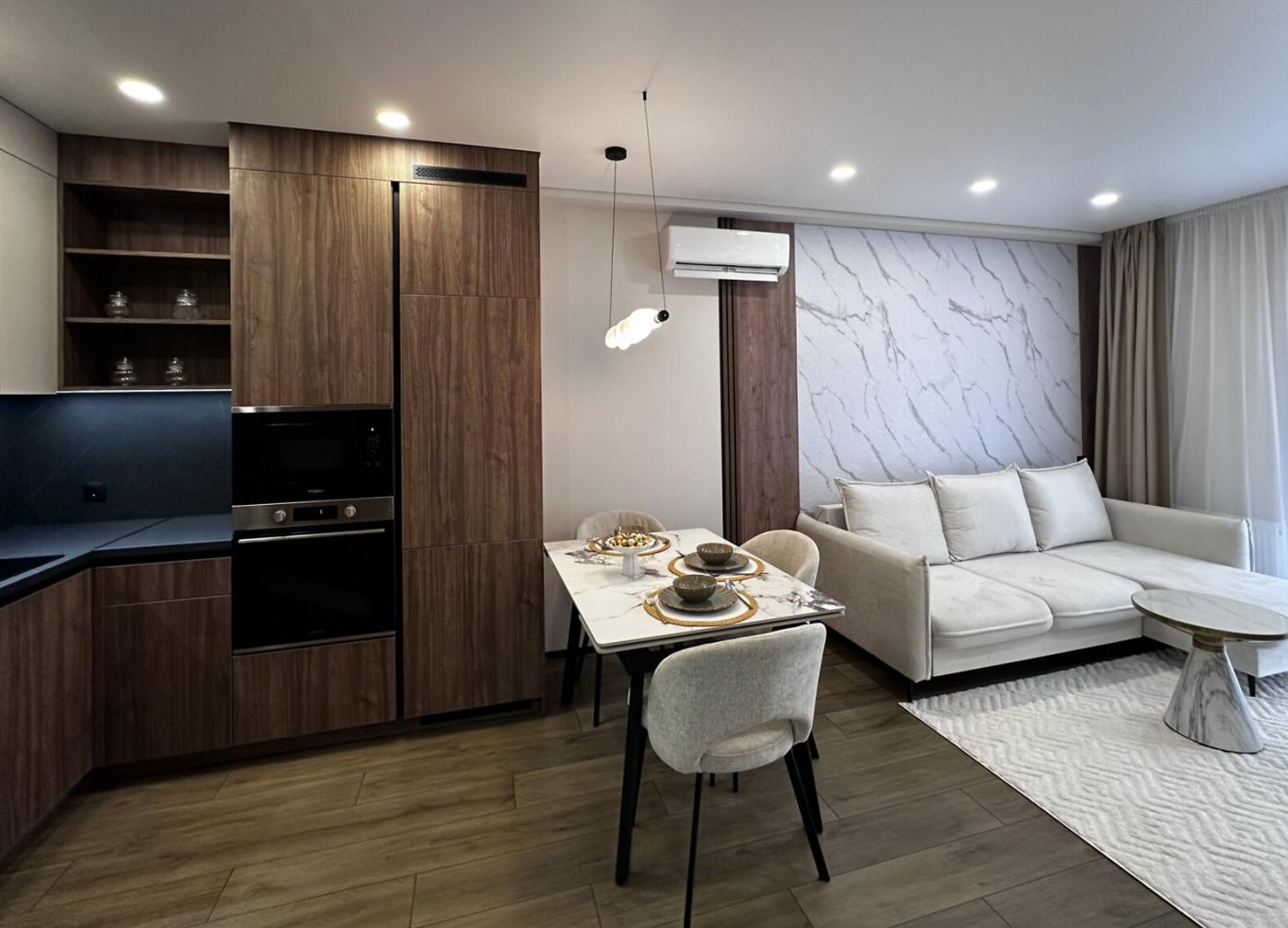Квартира після якісного дизайнерського ремонту, у ній ще ніхто не проживав — усе нове та продумане до деталей. Використані сучасні матеріали, встановлені натяжні стелі та двері прихованого монтажу. Повністю укомплектована технікою: посудомийна машина, духова шафа, мікрохвильова піч, витяжка, холодильник, пральна машина з функцією сушіння. У спальній кімнаті — велике ліжко з місцем для зберігання, шафа на всю стіну та зона для макіяжу. Тепла підлога у санвузлі, зручні системи зберігання та комфортний простір для життя.