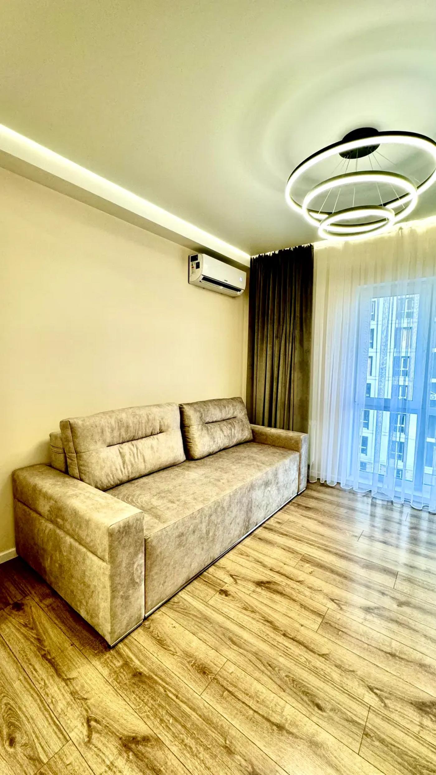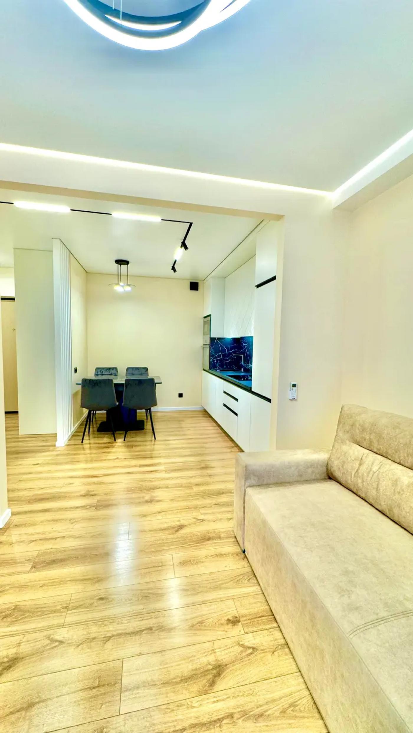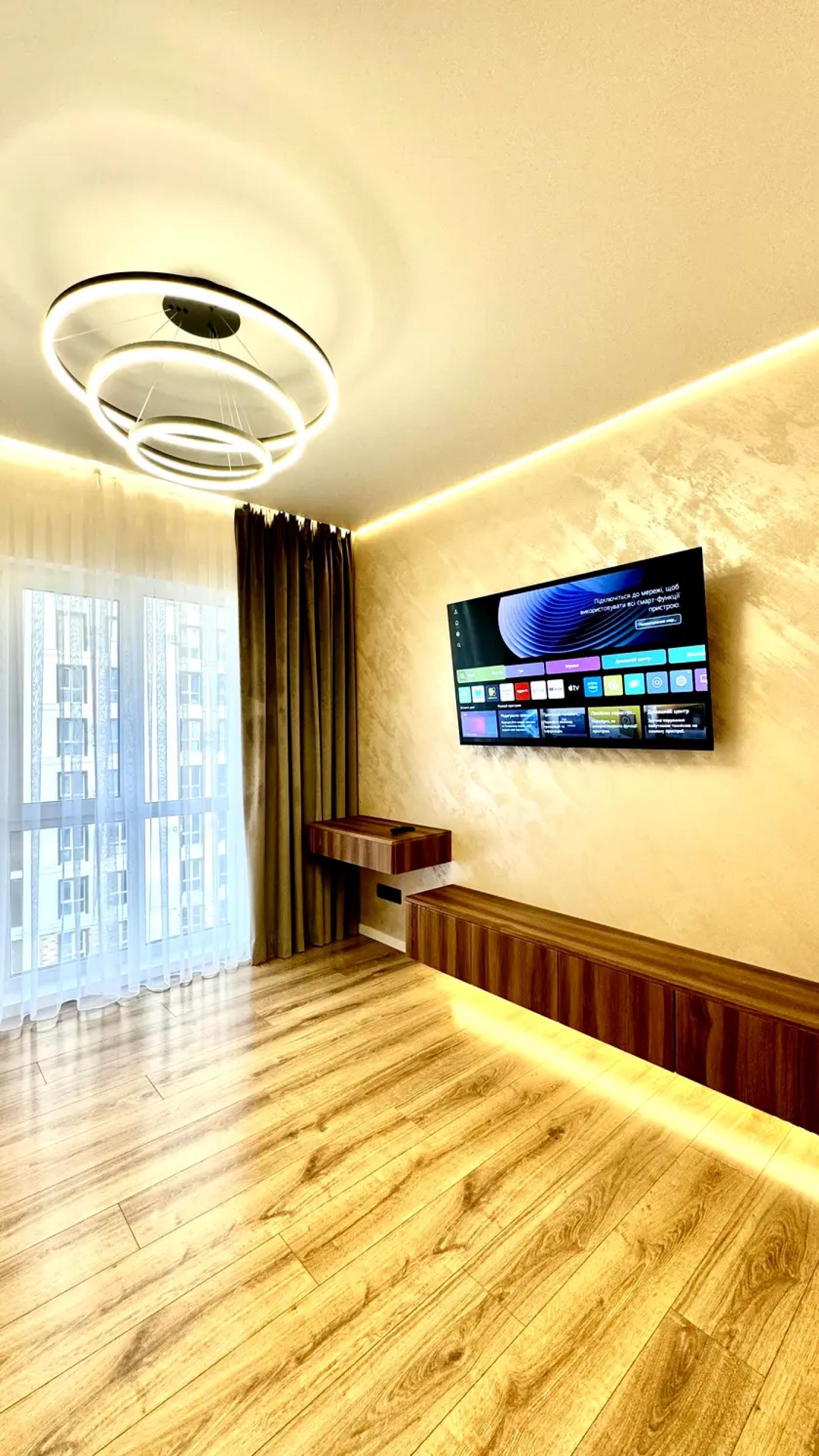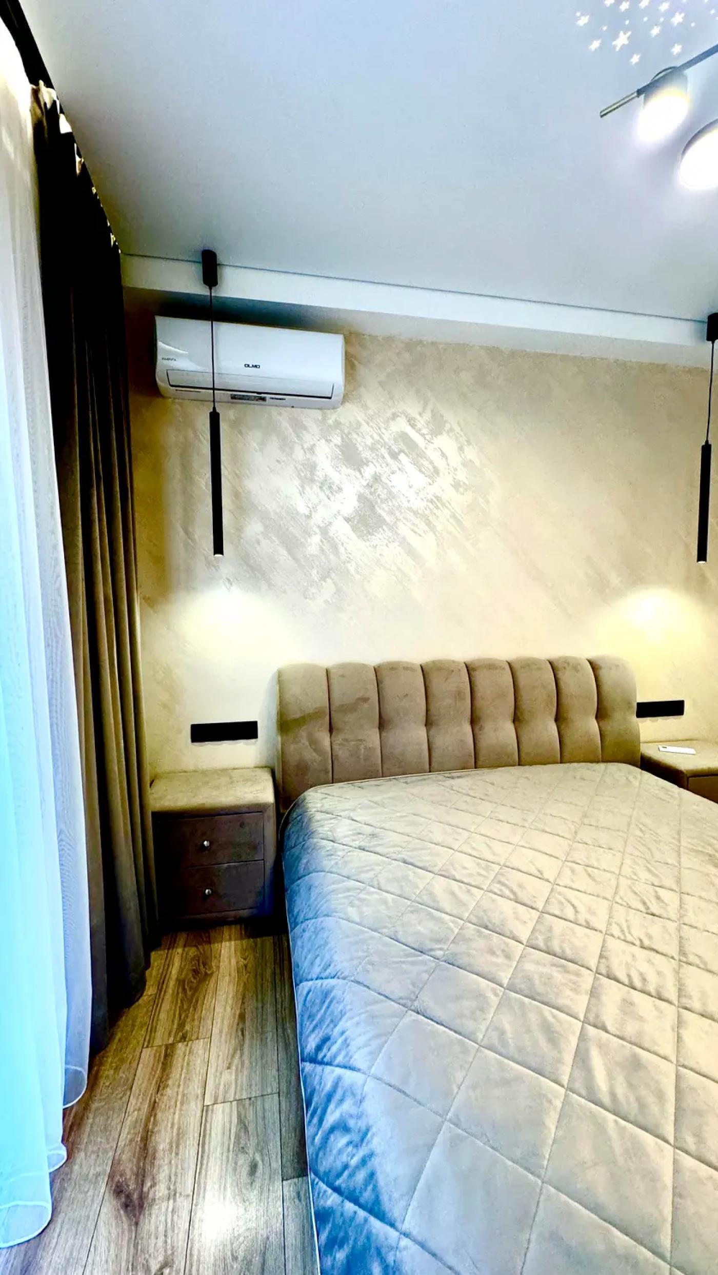 Інтер’єр виконаний у сучасному стилі з акцентом на комфорт і функціональність: грамотне освітлення з майстер-вимикачем, прохідними вимикачами та нічною підсвіткою, кондиціонери з відведенням конденсату в каналізацію, велика кількість розеток. Квартира повністю укомплектована технікою та меблями: вбудована кухня з технікою Samsung та Whirlpool, простора вітальня з великим диваном і SMART TV, окрема спальня з містким ліжком та шафою. Санвузол облаштований теплою підлогою, бойлером, душовою кабіною Ravak, пральною машиною та якісною сантехнікою.