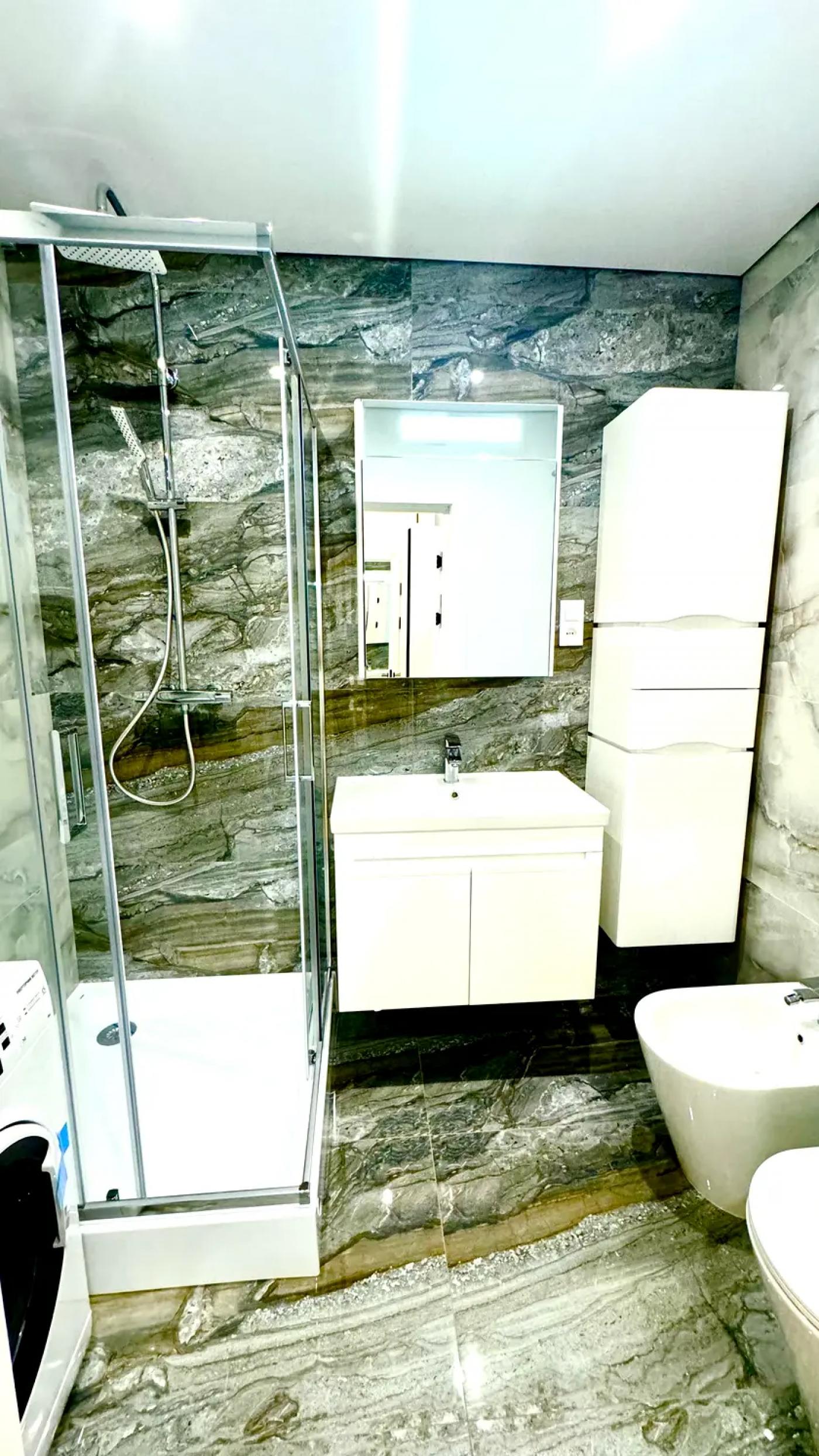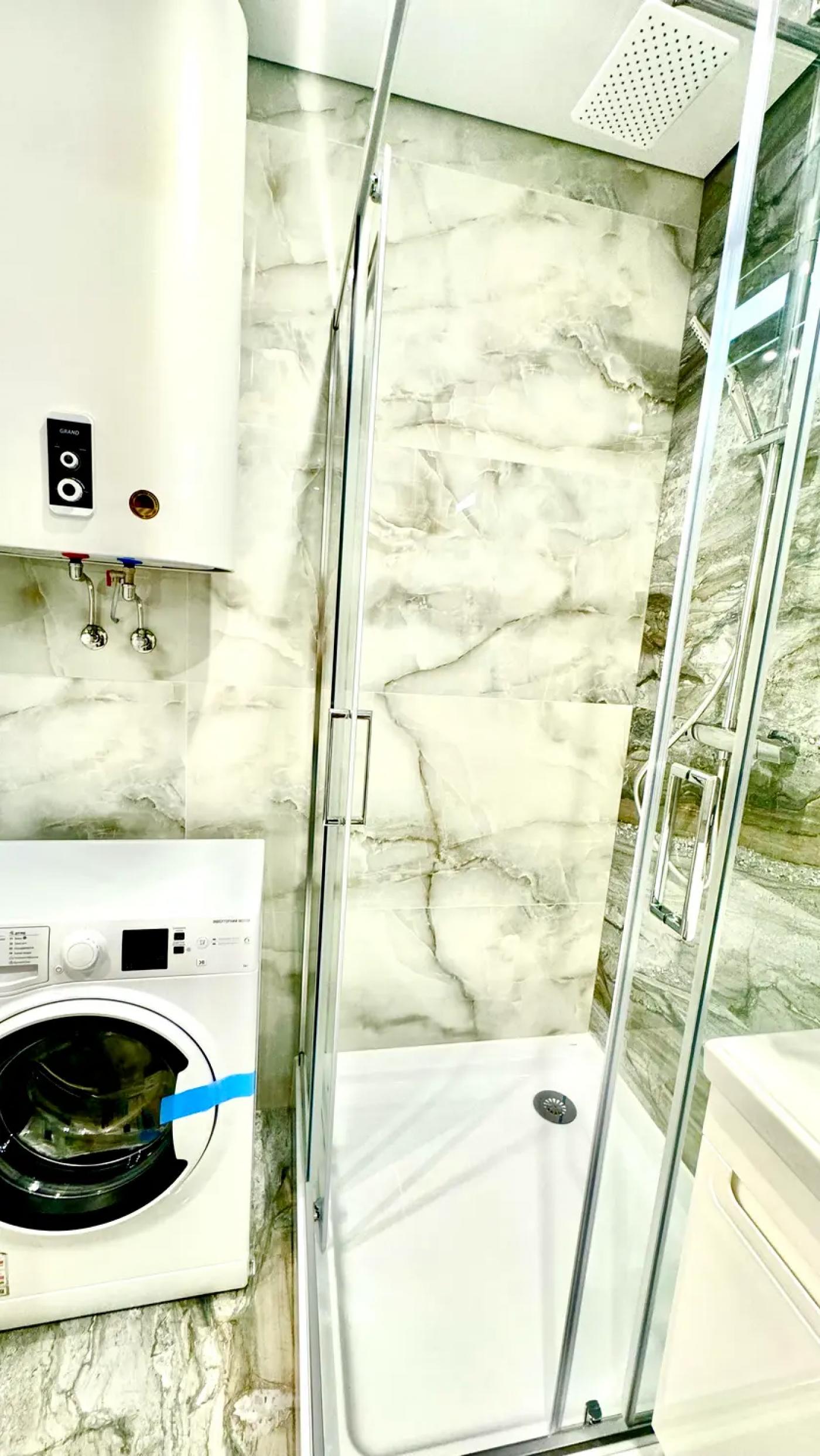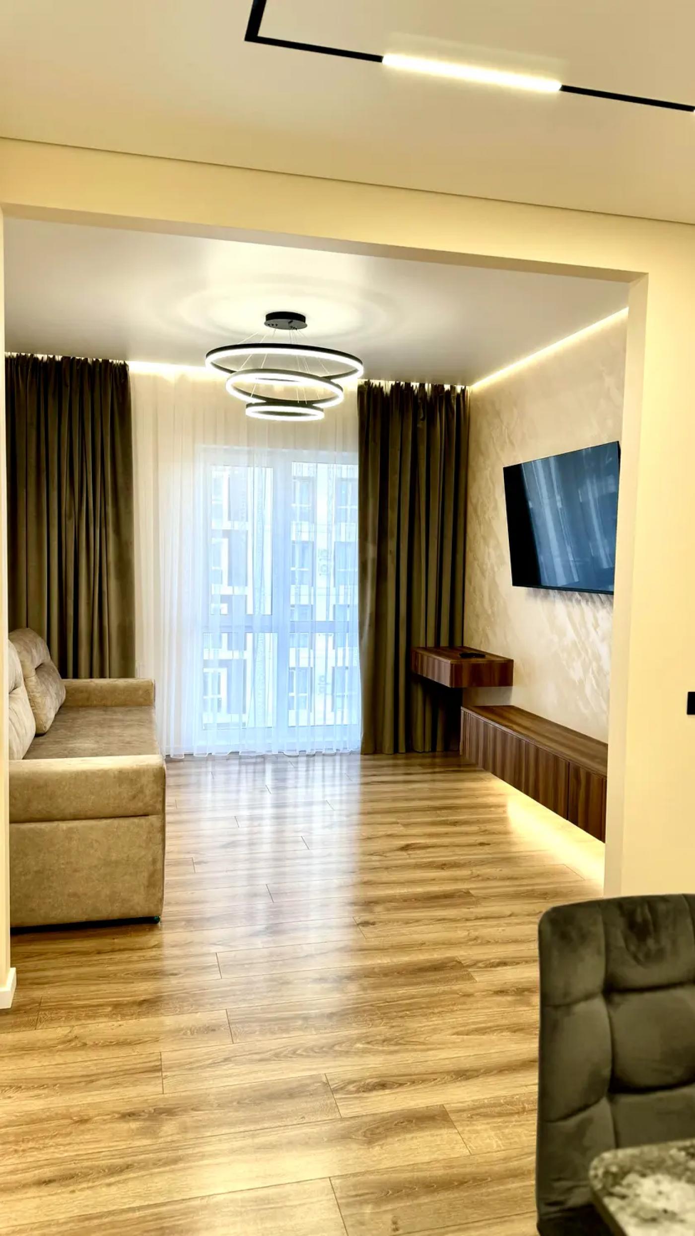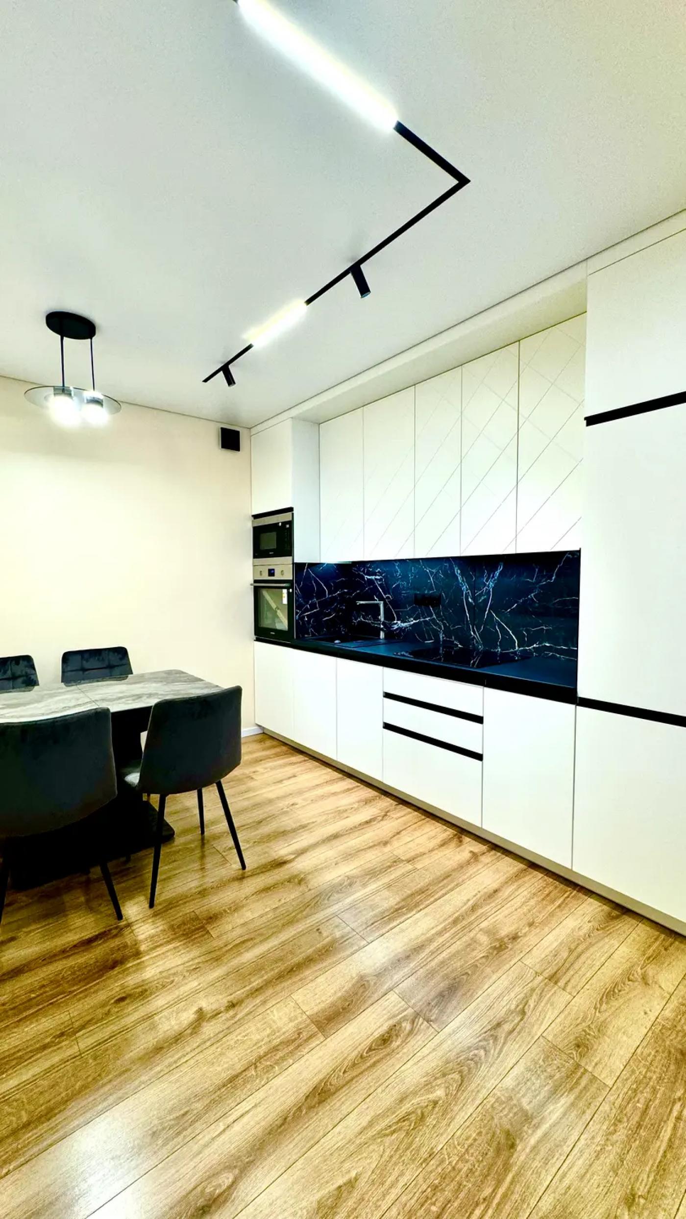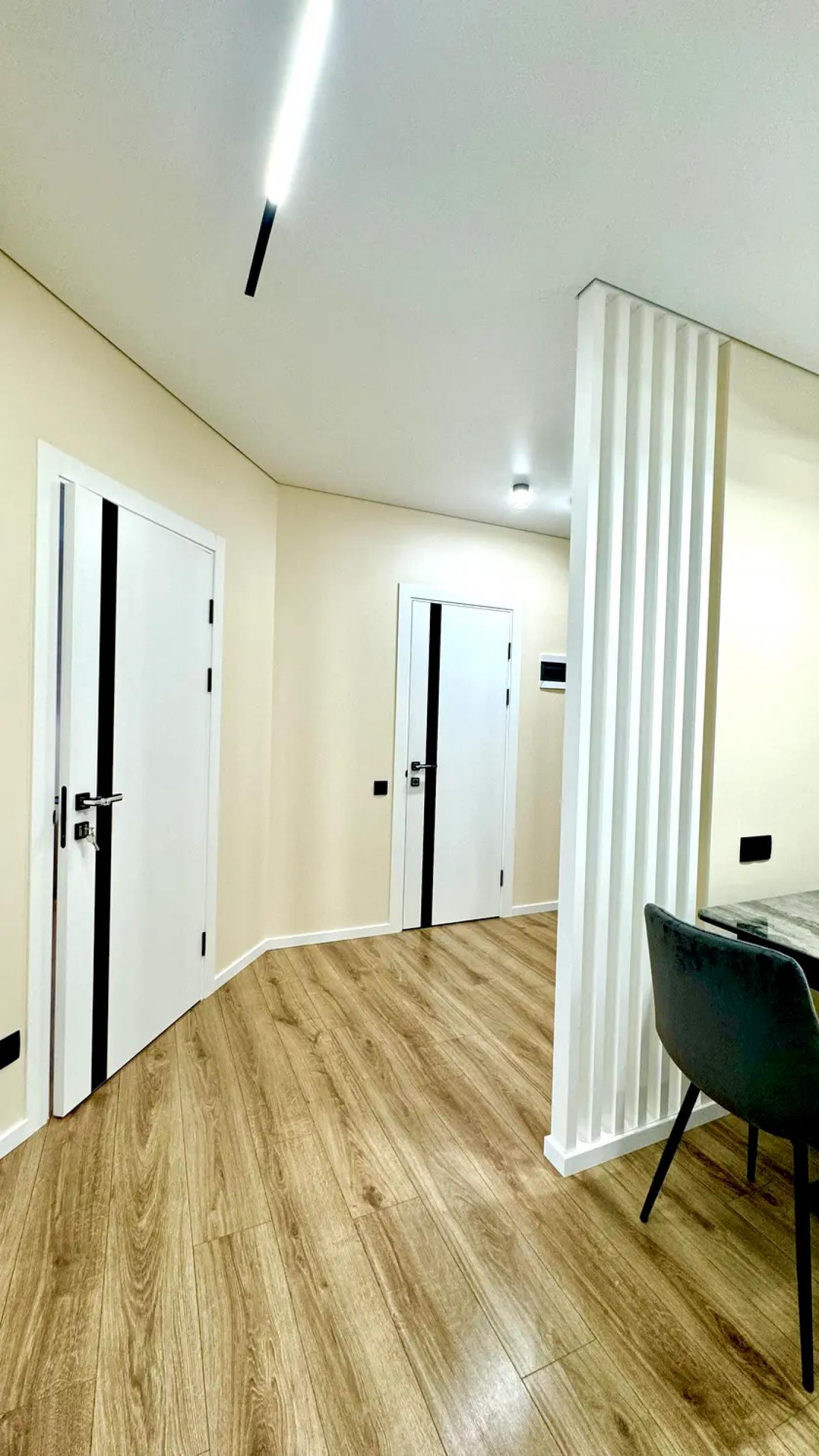 Інтер’єр виконаний у сучасному стилі з акцентом на комфорт і функціональність: грамотне освітлення з майстер-вимикачем, прохідними вимикачами та нічною підсвіткою, кондиціонери з відведенням конденсату в каналізацію, велика кількість розеток. Квартира повністю укомплектована технікою та меблями: вбудована кухня з технікою Samsung та Whirlpool, простора вітальня з великим диваном і SMART TV, окрема спальня з містким ліжком та шафою. Санвузол облаштований теплою підлогою, бойлером, душовою кабіною Ravak, пральною машиною та якісною сантехнікою.
