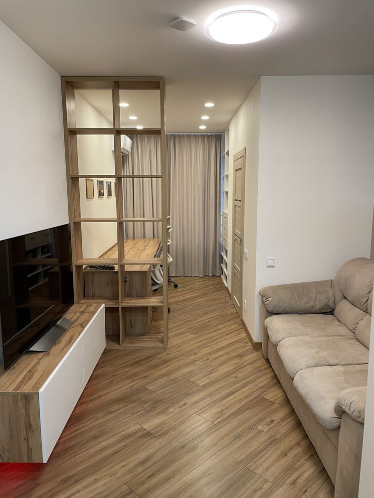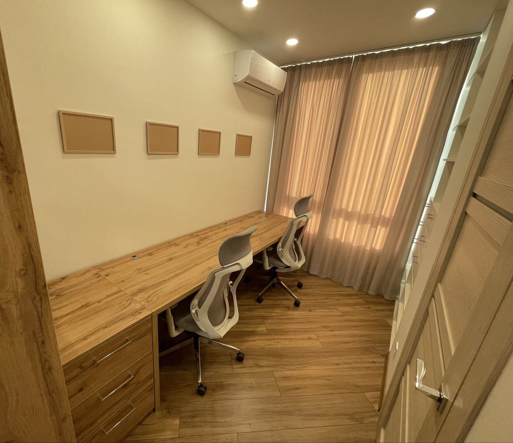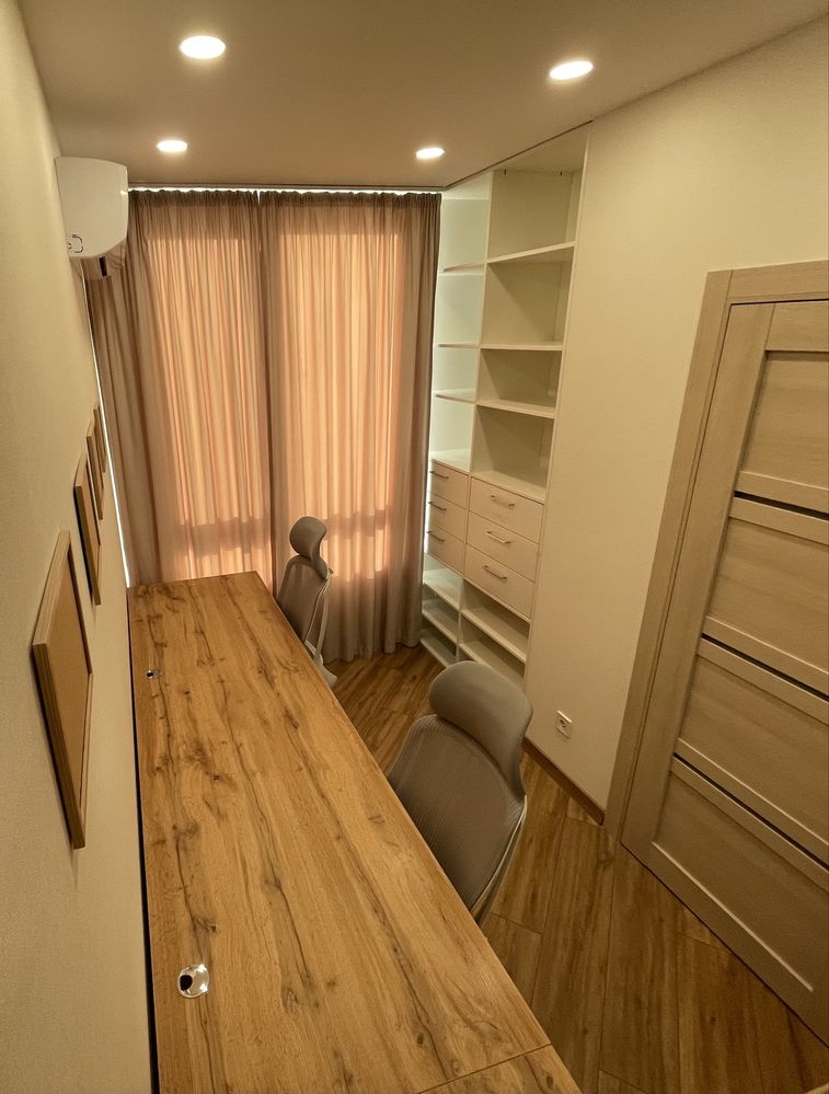 Квартира з якісним ремонтом, виконаним для себе, повністю укомплектована меблями та технікою — можна заїжджати одразу без додаткових вкладень. Вбудована кухня з якісною фурнітурою, техніка провідних брендів, кондиціонер, пральна машина із сушкою, бойлер, велика кількість місць для зберігання. Продумане зонування: окрема робоча зона, комфортна спальня з ліжком та простора вітальня. Південна сторона та вікна у двір забезпечують світло і затишок, а також тишу від міського шуму.