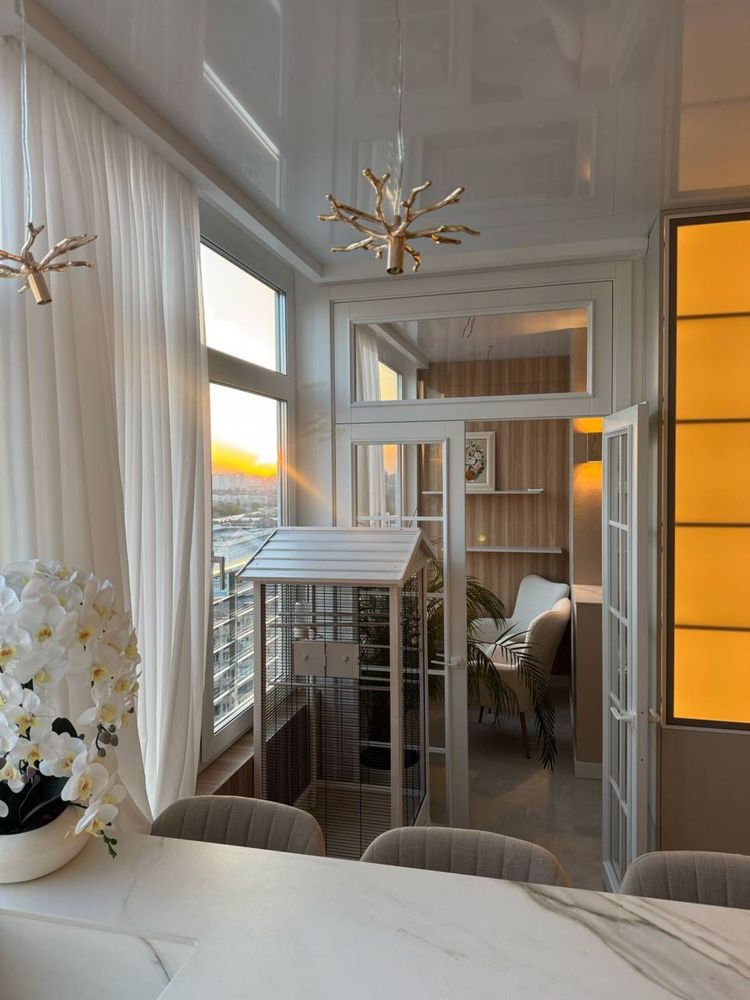 Квартира виконана за авторським дизайном із використанням якісних матеріалів та індивідуальних рішень. Усі меблі виготовлені на замовлення, кухня преміум-рівня зі стільницею з керамограніту, техніка та наповнення продумані до дрібниць. Спальня укомплектована італійськими меблями, зонування виконано скляними дверима у французькому стилі. Є окремий гардероб, тепла підлога по всій квартирі — комфорт у будь-яку пору року.