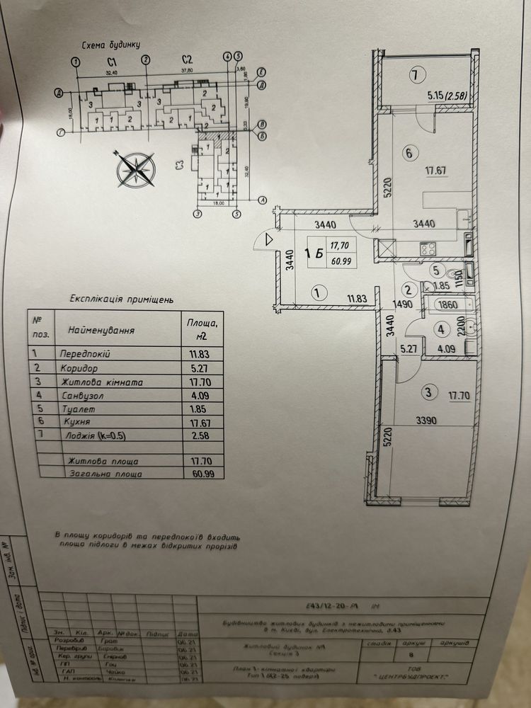 | Площа, кв.м.: | 60.99/17.67 |