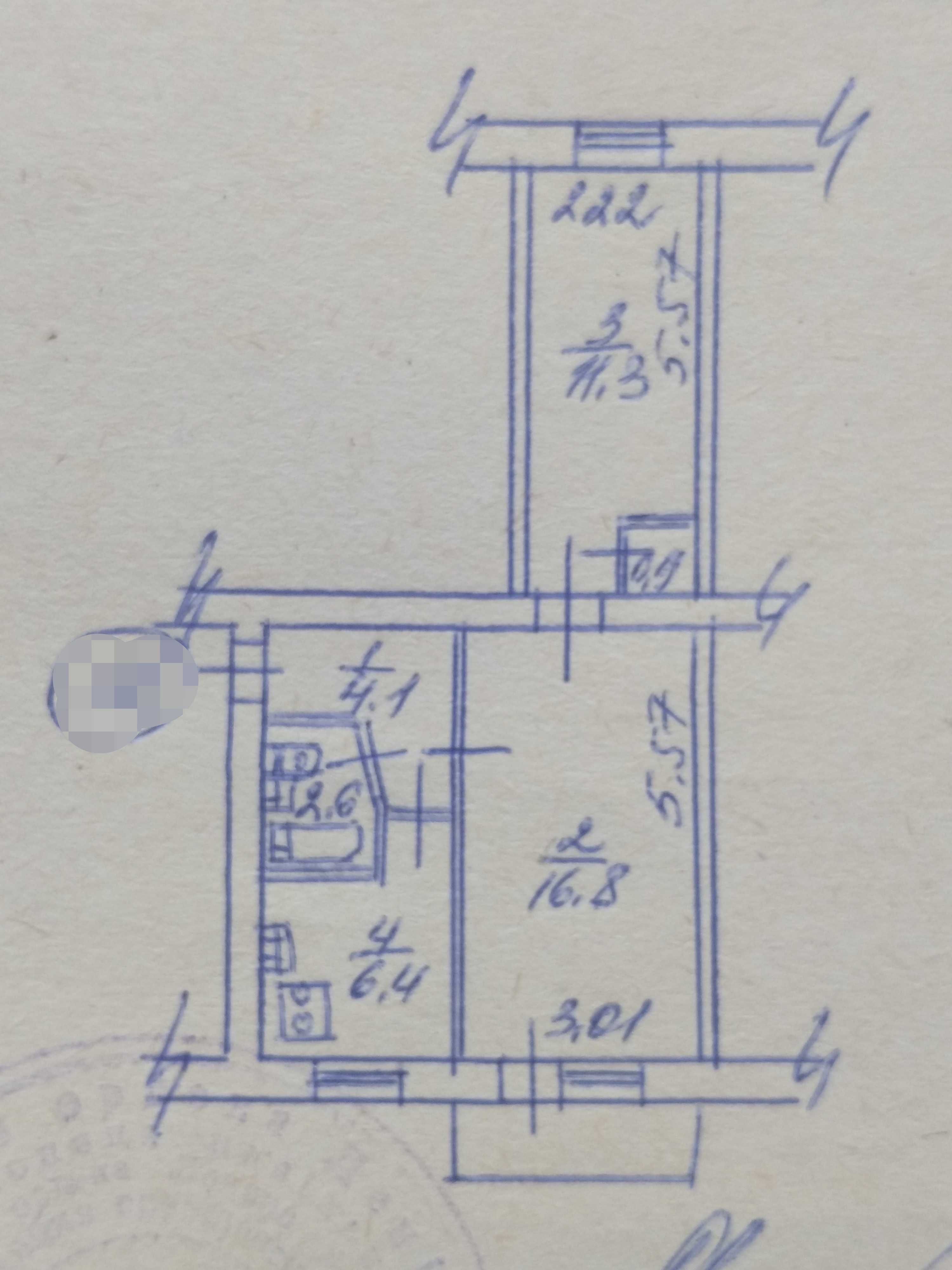 Площа, кв.м.:  40.56/22.16/9
