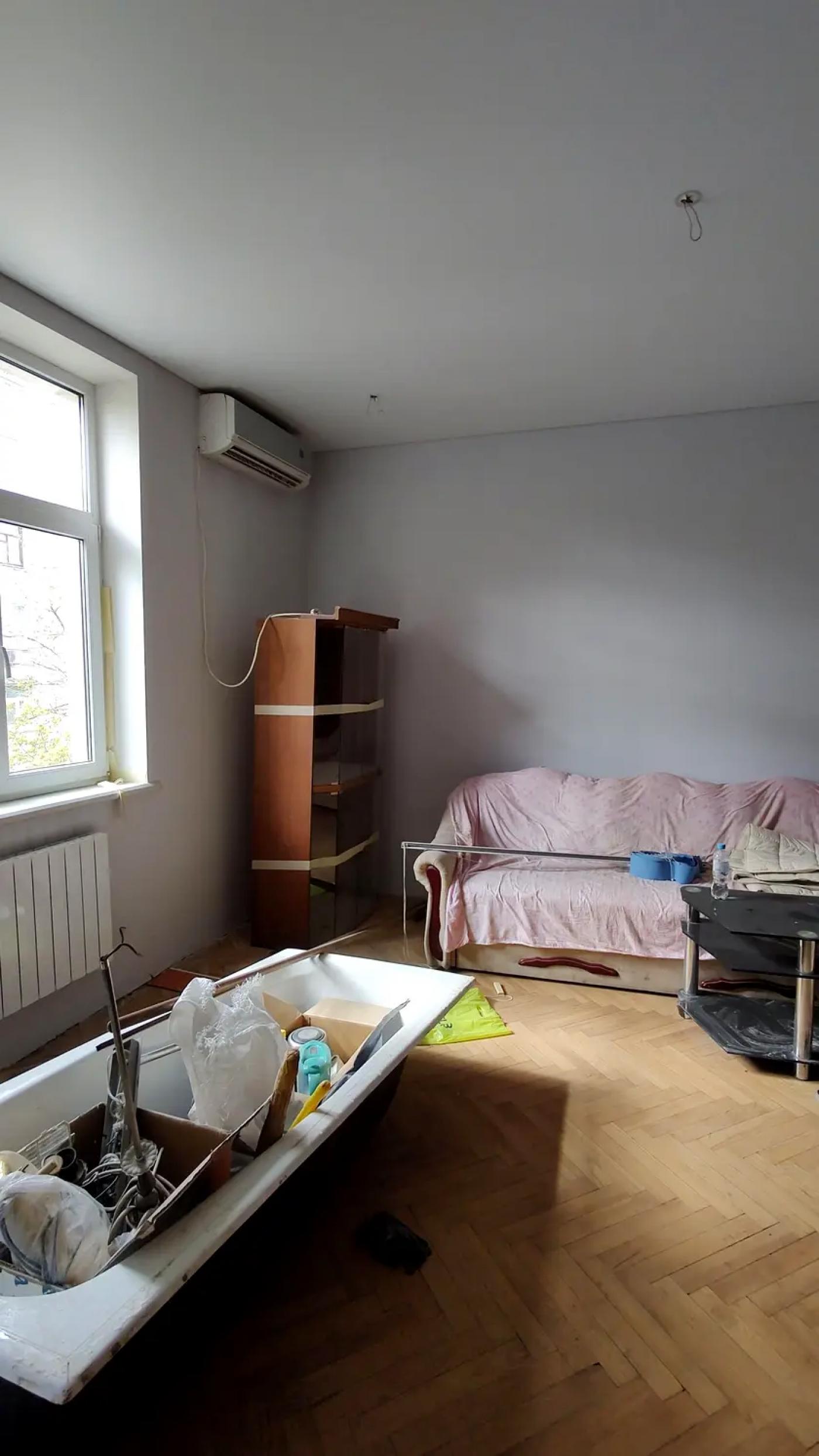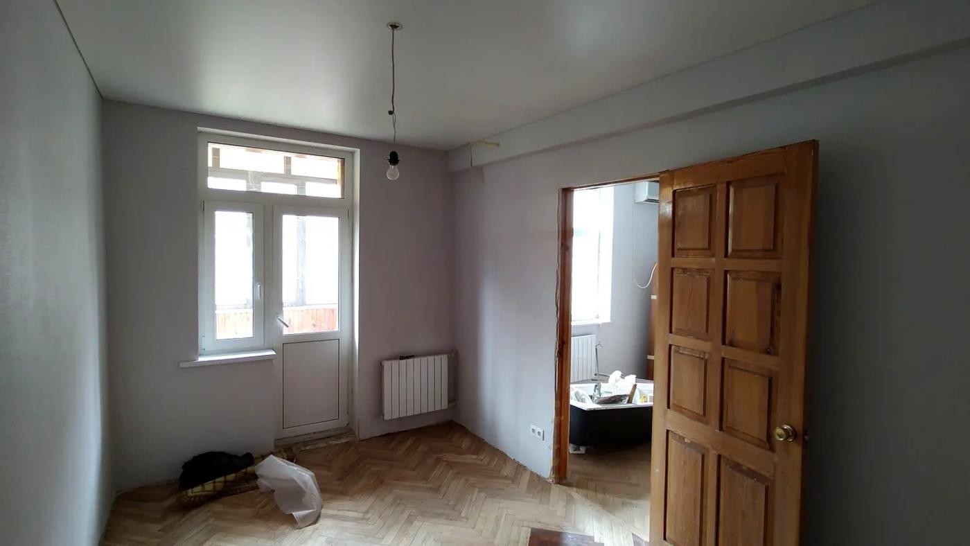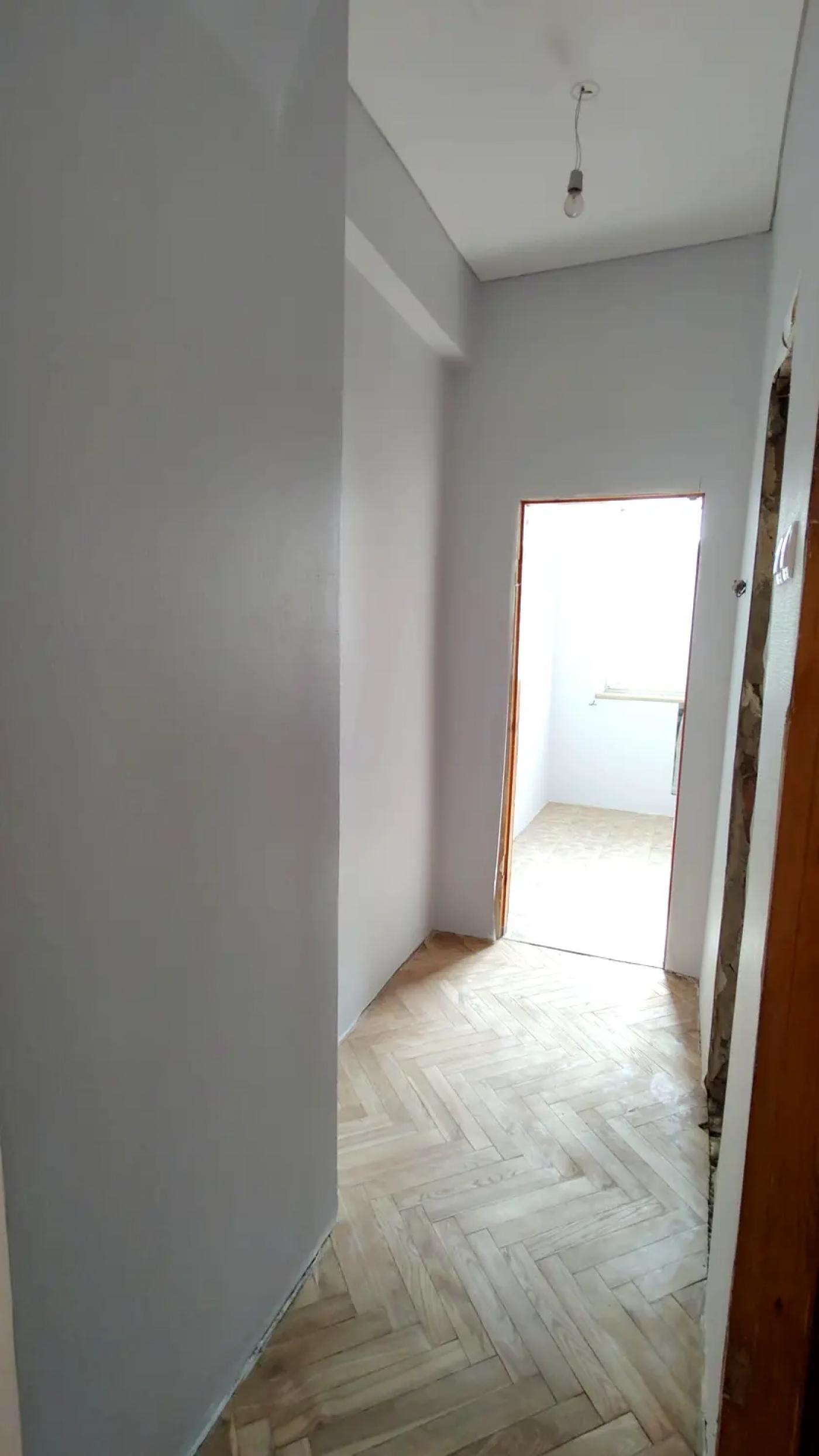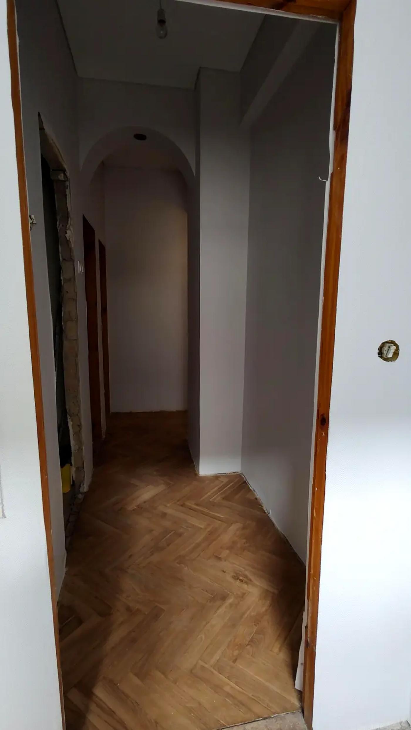 У квартирі вже виконано значну частину підготовчих та ремонтних робіт: демонтовано старі покриття, вирівняно стіни, частково замінено газову трубу, повністю оновлено електропроводку з додатковими розетками та встановлено сучасний лічильник. Стіни під фарбування, нанесено два шари фарби, натяжні матові стелі у кімнатах, кухні та коридорі. Підлога — відшліфований паркет із першим шаром лаку, на кухні облаштований новий плитковий фартух, встановлена робоча газова плита з духовкою. Це варіант, де основа вже зроблена, і залишилось довести під себе.