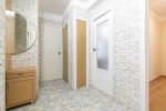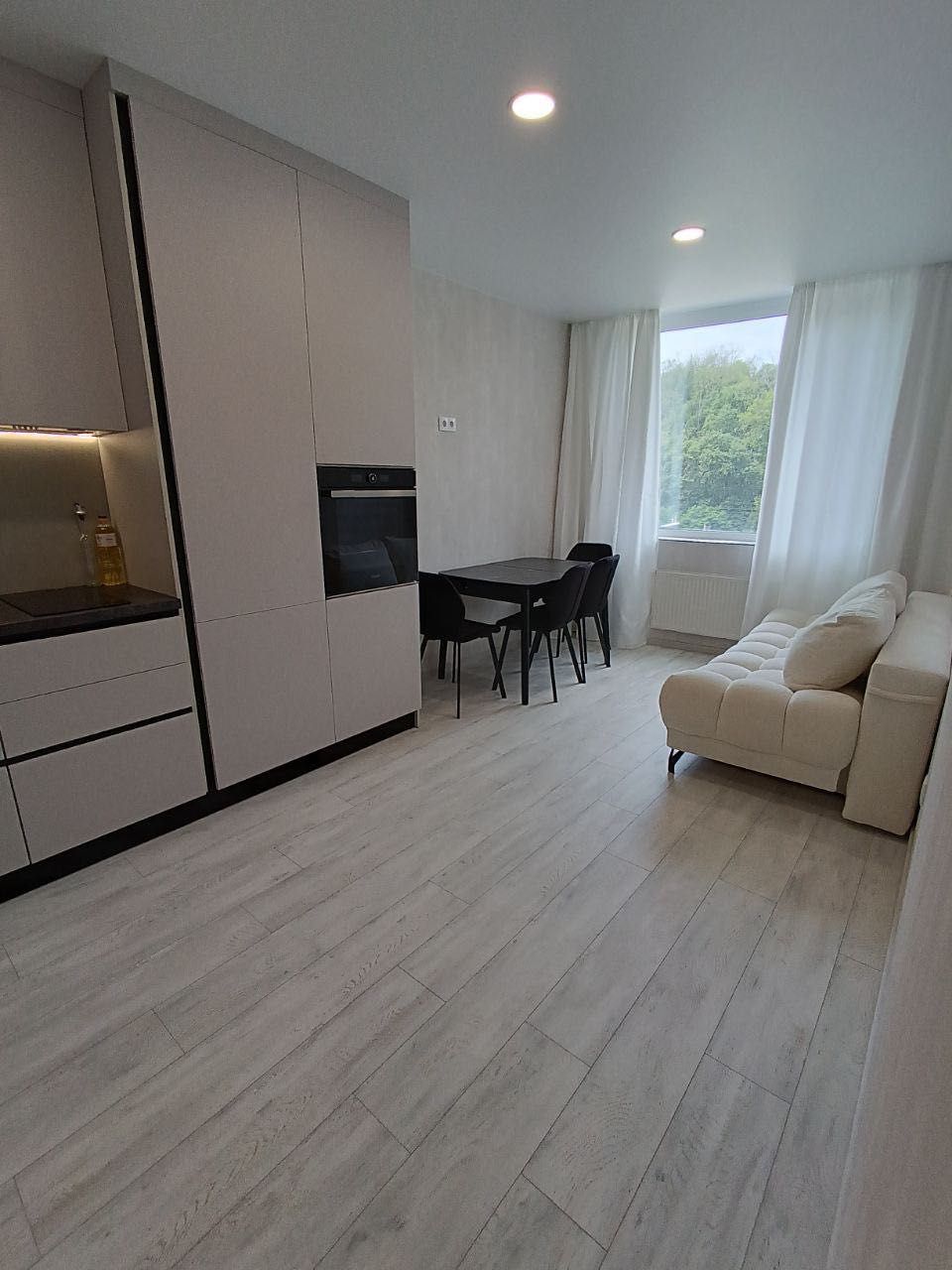 Замінена проводка, проведено пластикові труби. Санвузол сумісний, нова сантехніка: ванна, змішувачі, сушки для рушників. Є необхідні меблі: кухня, стіл, табуретки, гарнітур у вітальні, диван та меблі в коридорі; техніка: холодильник, пральна машина, плита, витяжка, чайник — все входить у вартість.