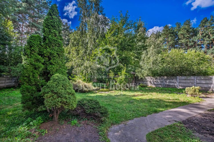 Загальна площа ділянки — 17 соток із додатковим бонусом ще 20 соток землі. Територія доглянута, виконаний ландшафтний дизайн, є декоративний ставок, глибокий бункерний погріб та гараж на два авто. Асфальтована дорога веде безпосередньо до двору.