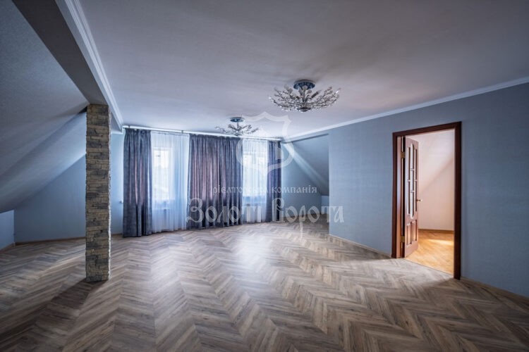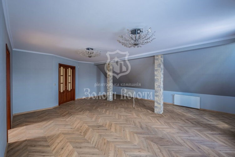 Продається чудовий 3-поверховий котедж на вулиці Жовтневій, 8а, у селі Гавронщина Бучанського району. Будинок зведений з червоної цегли, утеплений пінопластом, дах вкритий металочерепицею, вікна «Rehau» трикамерні, висота стелі — 3 м.