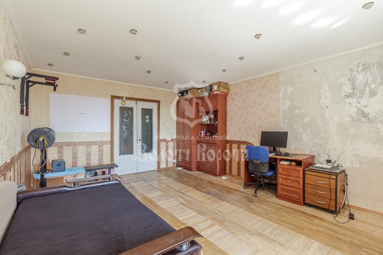 Квартира розташована на 14 поверсі 18-поверхового монолітно-каркасного будинку 1995 року побудови. Висота стелі — 2,75 м, усі кімнати та кухня окремі, санвузол роздільний. Квартира має три балкони та комору. Загальний стан — під ремонт.