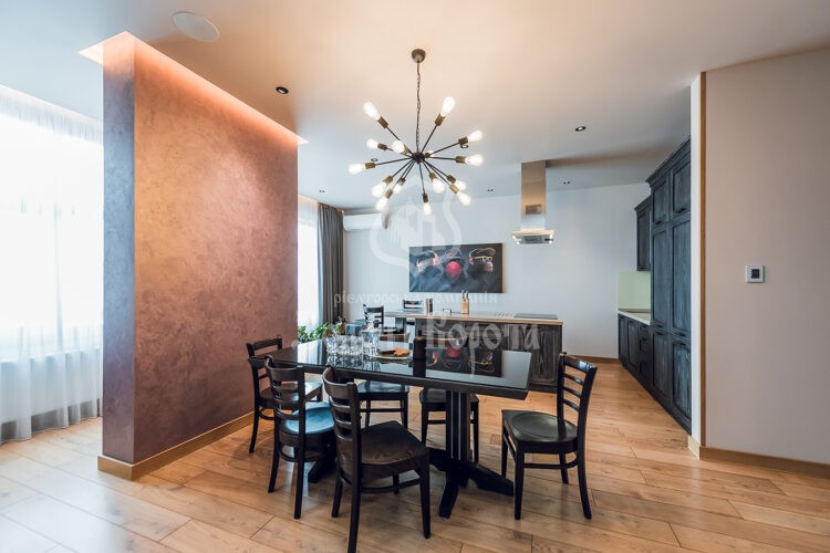 Продається дворівнева 4-кімнатна квартира на вулиці Євгена Коновальця, 36е. У помешканні виконано дизайнерський ремонт — якісний та вишуканий. Оселя повністю укомплектована меблями та технікою.