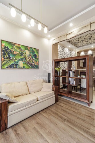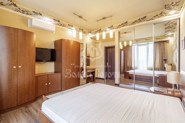 Квартира розташована на комфортному 12 поверсі з 14. Інтер’єр виконаний у класичному стилі — теплі відтінки, просторе планування, продумане зонування.