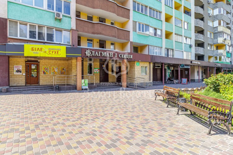 Пропонується до продажу простора 2-кімнатна квартира площею майже 50 м2, розташована на 7 поверсі 27-поверхового будинку в сучасному ЖК «Флагман», за адресою: провулок Лобачевського, 7а, у мікрорайоні Соцмісто.