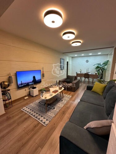 Ремонт виконано менше ніж 5 років тому, з використанням дорогих матеріалів і техніки преміумкласу. У кухонній зоні — вбудований домашній кінотеатр, по всій оселі — неонове підсвічування, у спальні — плазма, а в кожній кімнаті — кондиціонери.