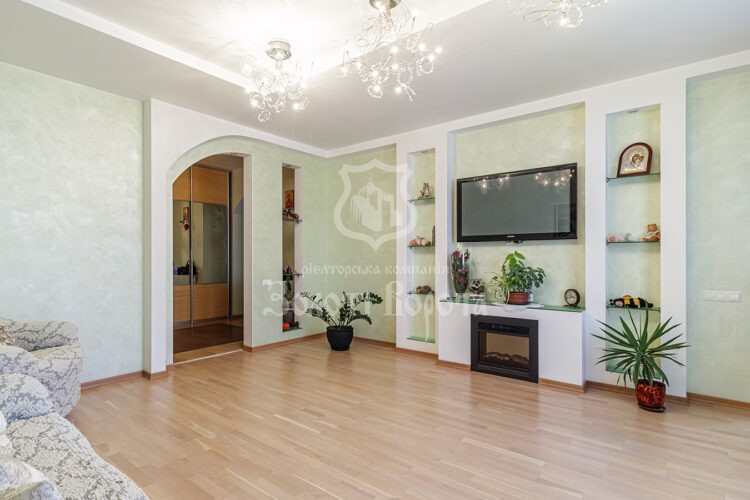 Продається 4-кімнатна квартира на вулиці Володимира Івасюка, 4. Дуже затишна оселя. Ремонт виконаний у світлих тонах. Зручне планування: всі кімнати роздільні між собою, два санвузли, велика вітальня — 28 м2, кухня с лоджією — 24 м2, дитяча кімната — 17 м2, дитяча кімната — 20 м2, спальня — 19,8 м2. Всі меблі та техніка залишаються новому власнику.